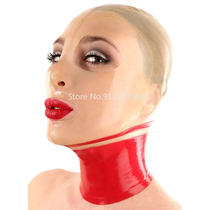 Прозрачная и красная латексная маска ручной работы с отделкой, сексуальный мужской и женский резиновый капюшон для вечерние, Женский костюм для косплея на Хэллоуин