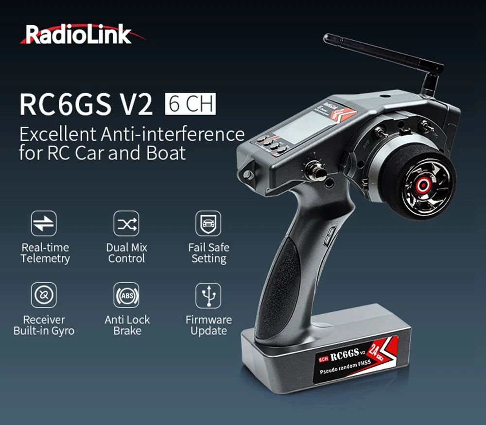 RC6GS V2Является идеальным партнером дляВсе типы радиоуправляемых автомобилей и лодокНа рынке представлены одномоторные и двухмоторные модели, такие как ползунки, танки, гусеницы, башер, Радиоуправляемый короткий грузовик, Радиоуправляемый гусеничный, Дрифтинг Радиоуправляемый автомобиль, бензиновый Радиоуправляемый автомобиль, мини-Радиоуправляемый автомобиль, RC Monster Truck, внедорожник RC, GP RC Car, EP RC Car и другие типы радиоуправляемых автомобилей или лодок.