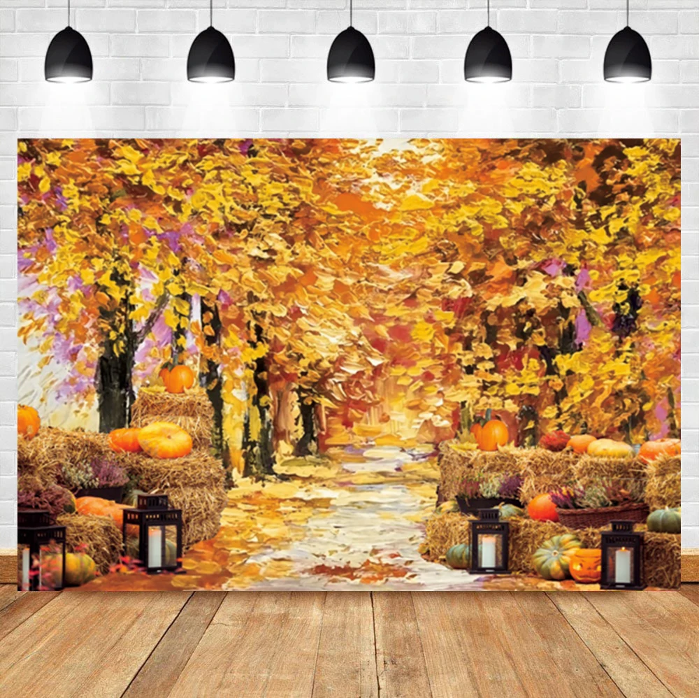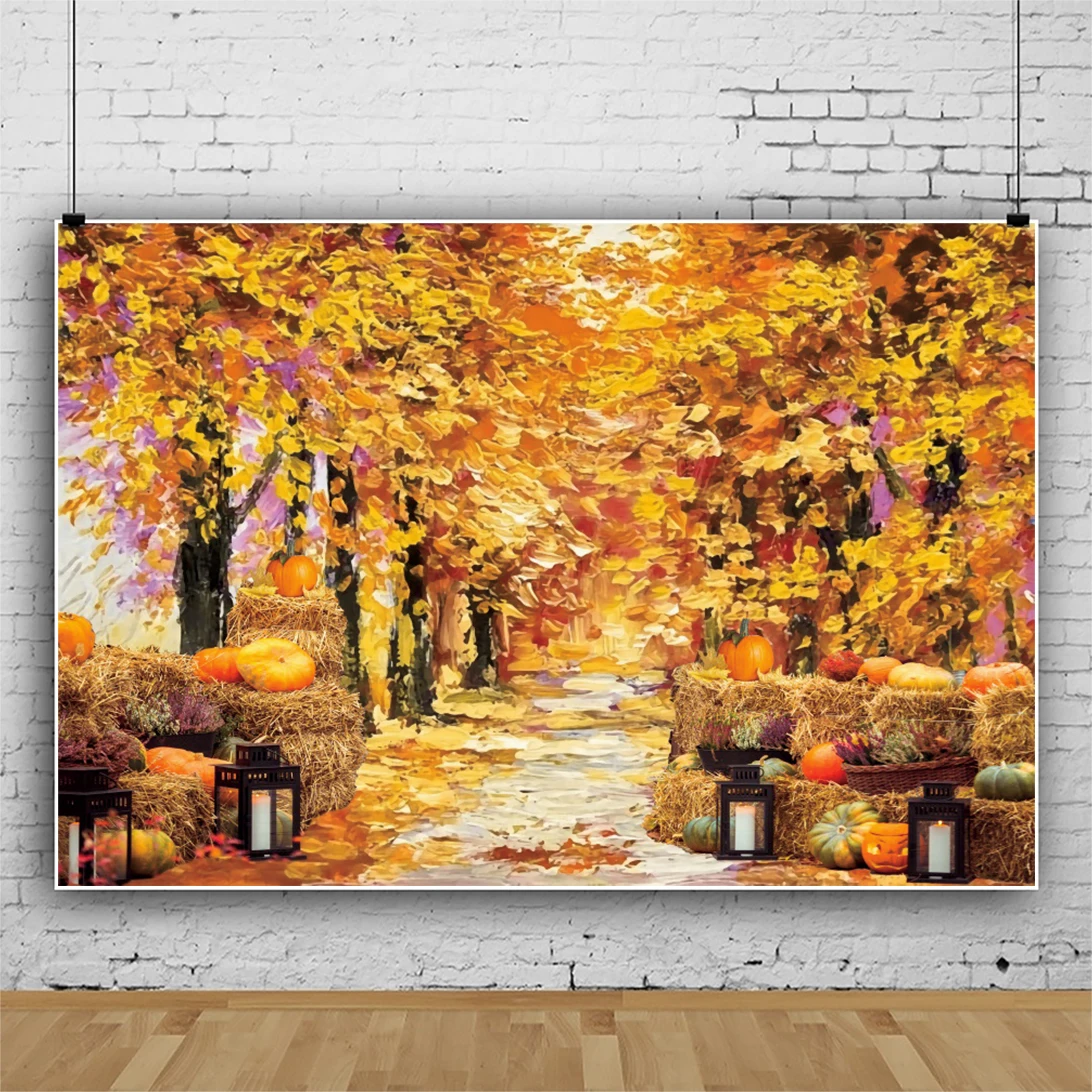 Фон для фотосъемки Laeacco с изображением леса павших листьев тыквы осеннего Пейзажа для фотостудии