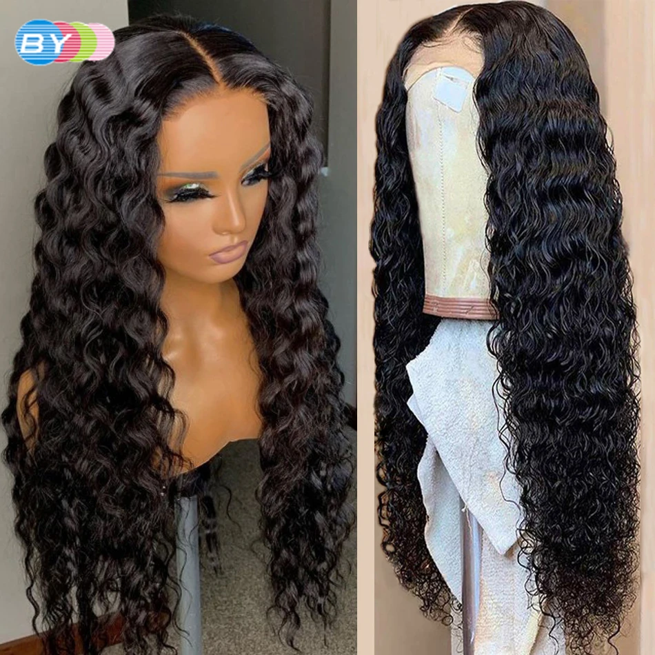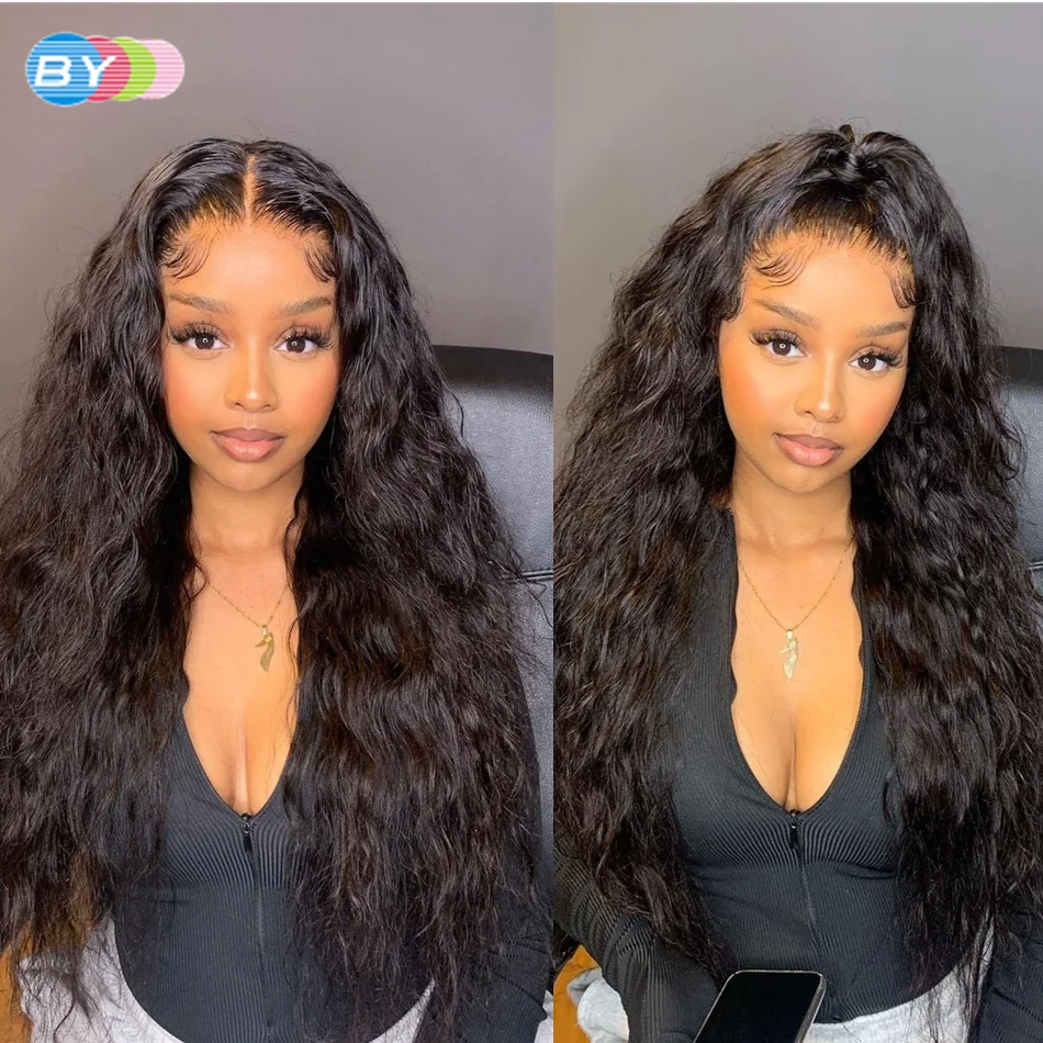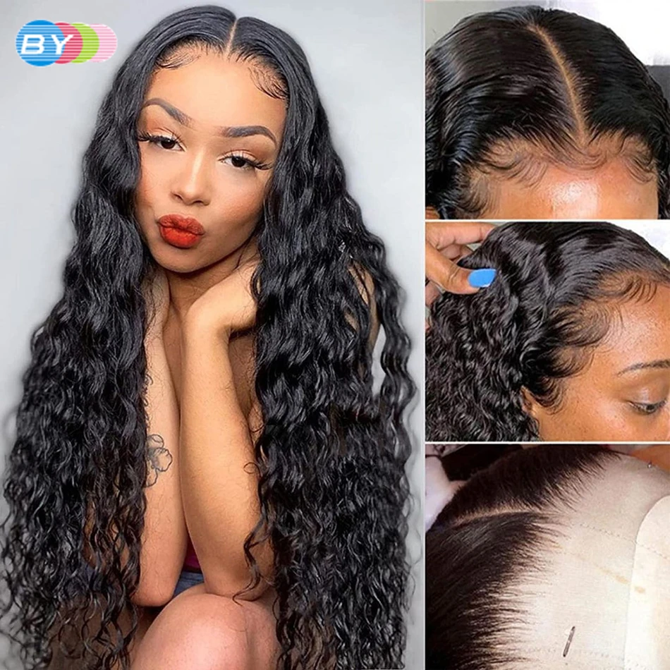 Парик из натуральных волос на сетке Water Wave 4x4, парик из 100% неповрежденных волос, длинные парики из человеческих волос 28 дюймов для женщин, плотность 250%, влажные и волнистые