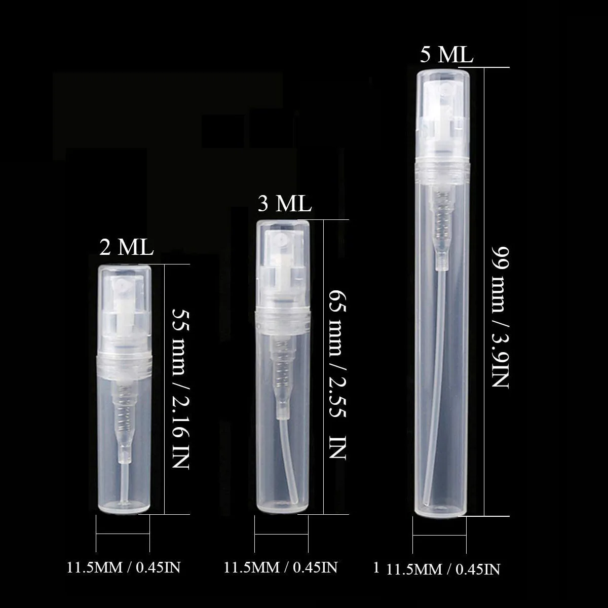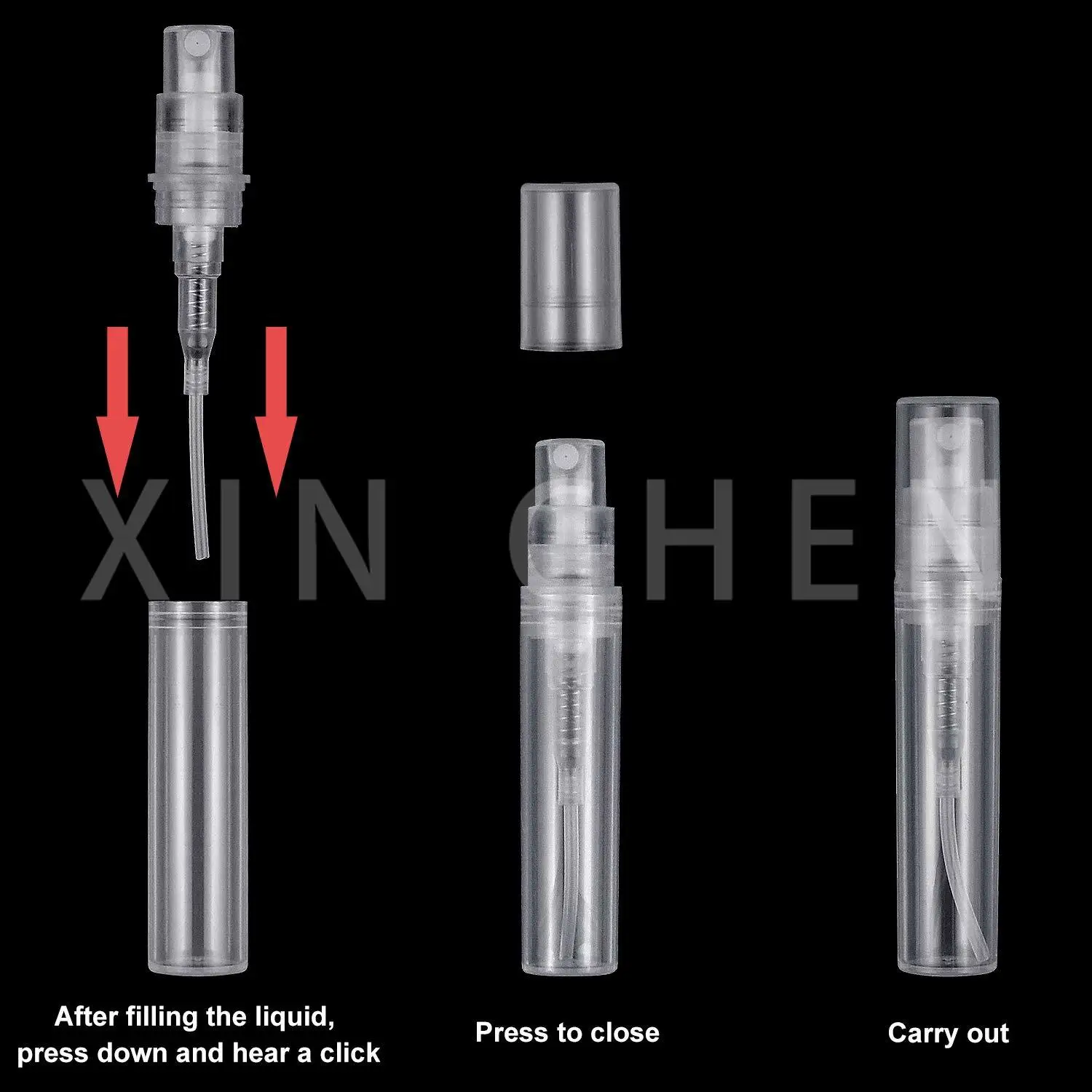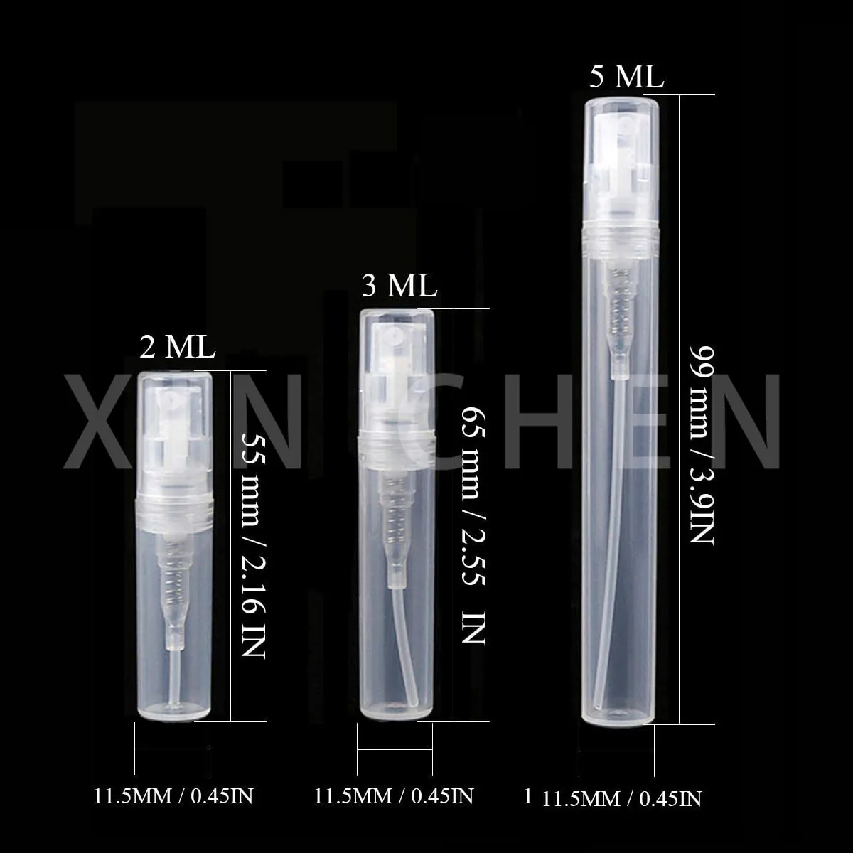 100 шт., пластиковые флаконы-распылители для духов, 2 мл, 3 мл, 5 мл