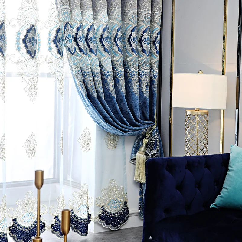 Кашемировые шторы с вышивкой, аппликация с синим затемнением, готовый продукт на заказ, для гостиной, столовой, спальни