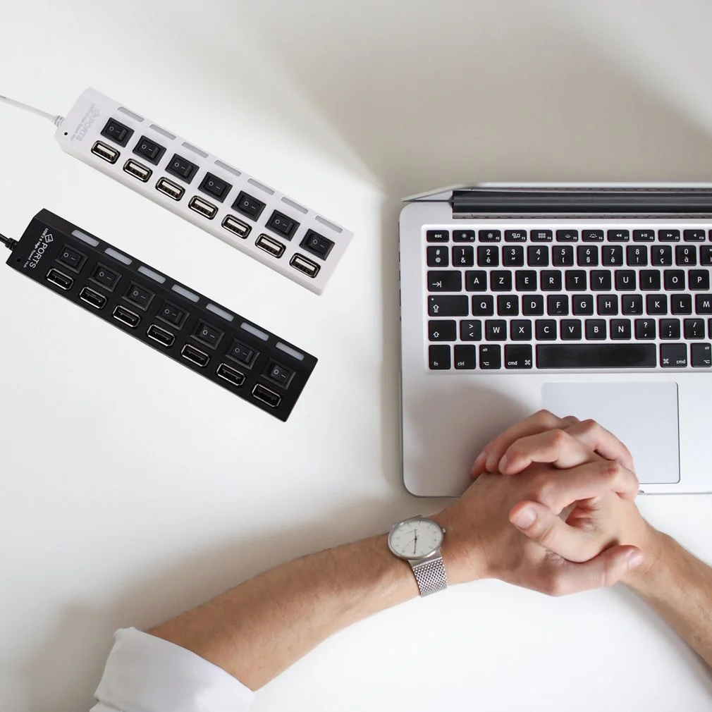 7-портовый адаптер USB 2,0, высокоскоростной многоинтерфейсный концентратор, включениевыключение, независимый переключатель, индисветильник, семибитный разветвитель