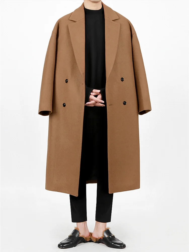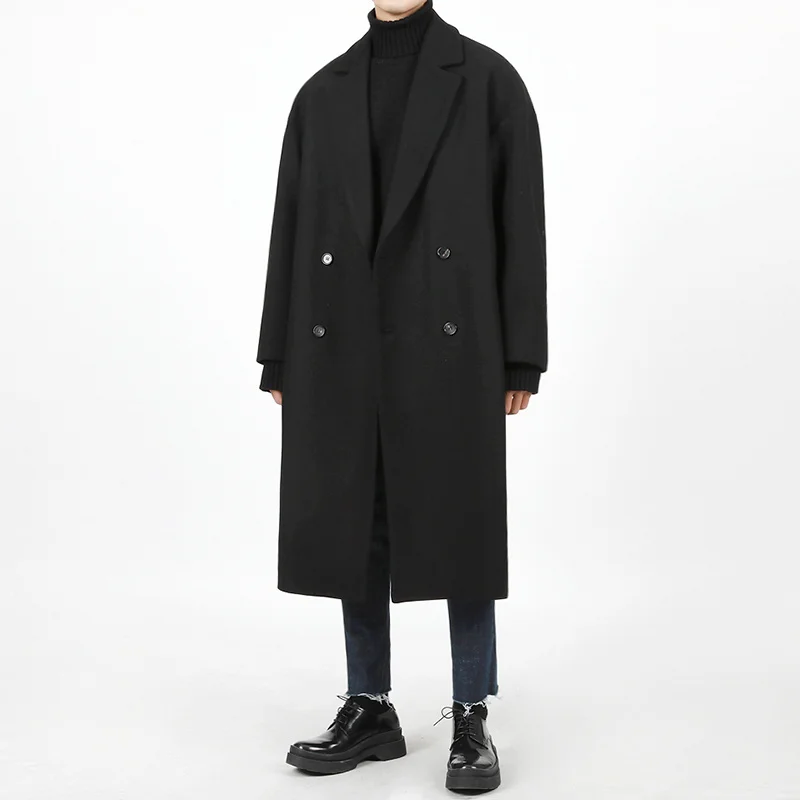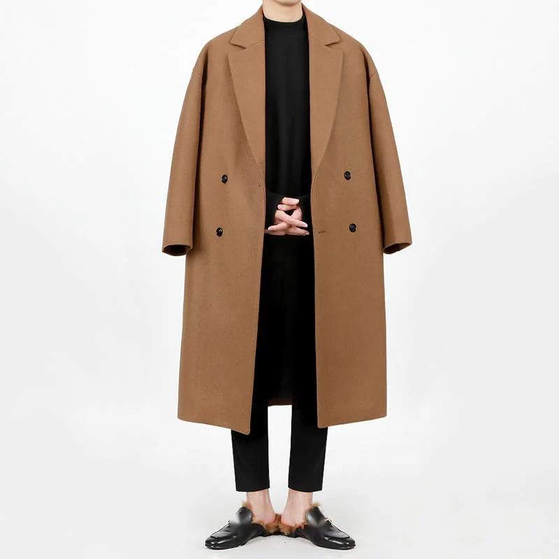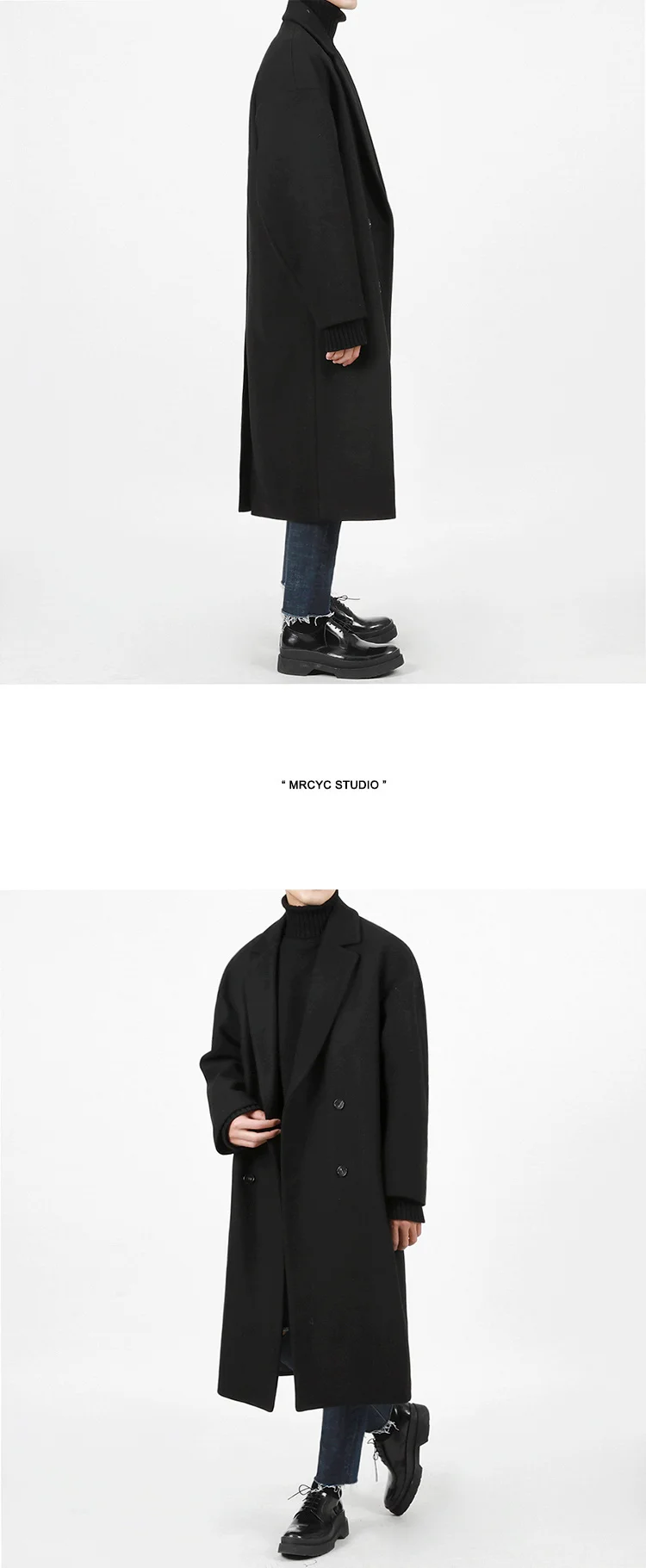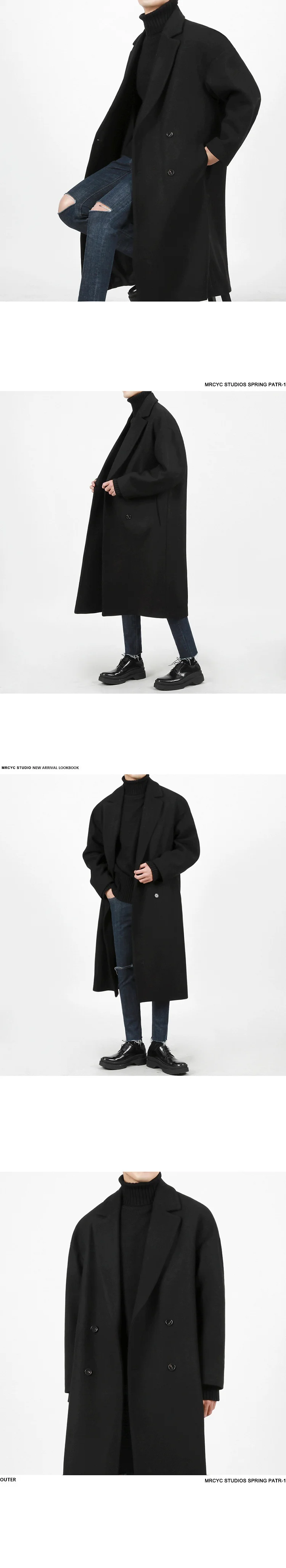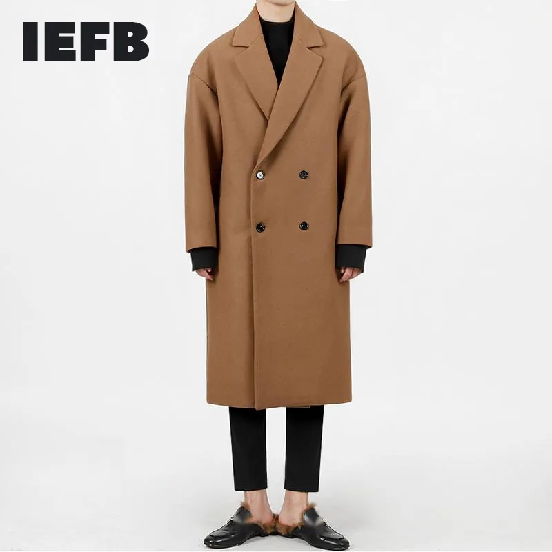 Мужская Осенняя утепленная модная свободная теплая шерстяная ветровка IEFB средней длины, двубортные пальто