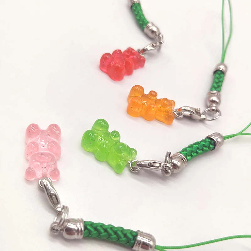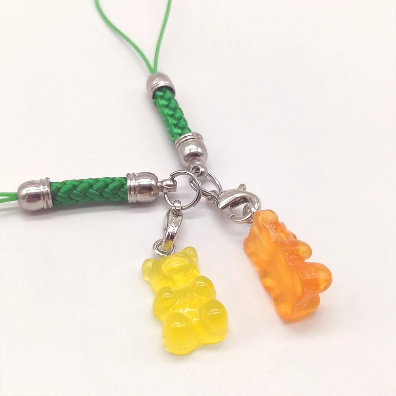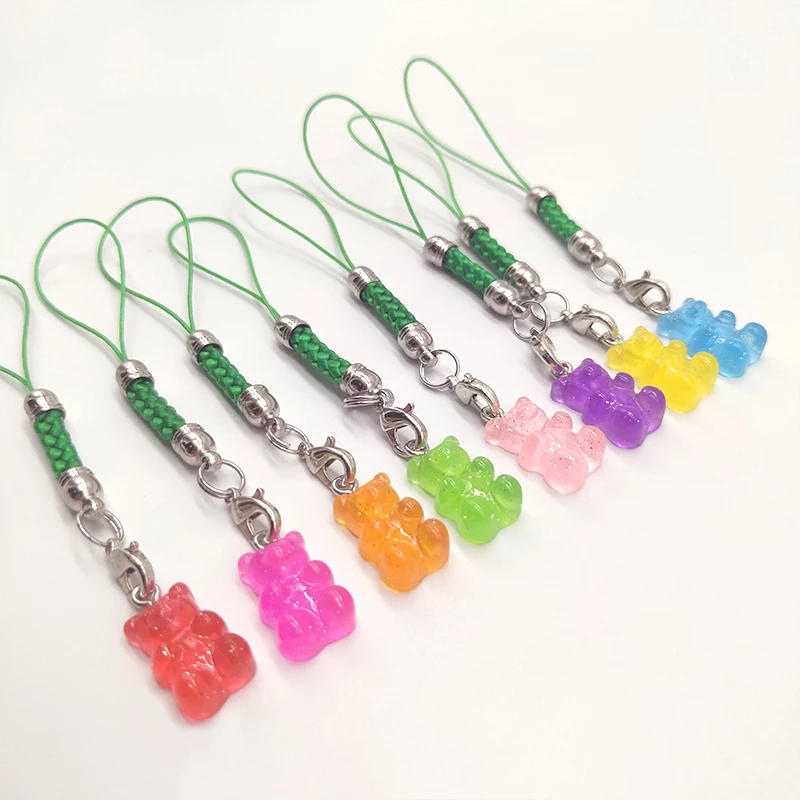 Зеленая веревка, брелок с медведем из смолы, кольцо для ключей с плоским основанием, акриловая Милая Подвеска для сумки, аксессуары для изготовления ювелирных изделий