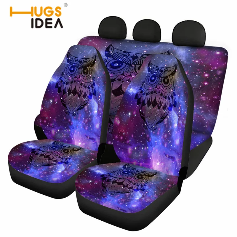 Полный комплект, чехлы на автомобильные сиденья с изображением Галактики, синего и фиолетового цветов, защита для переднего и заднего сидений, универсальный интерьер автомобиля для женщин и мужчин