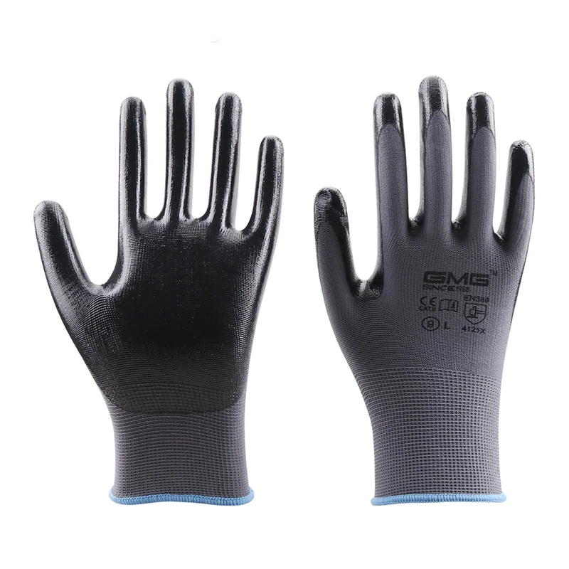 Рабочие защитные перчатки GMG, серые, полиэфирные, черные, с нитрил...