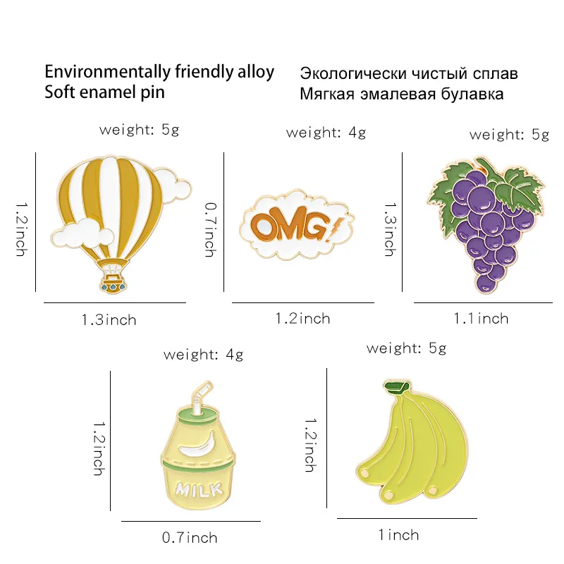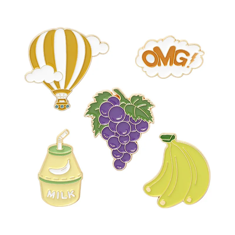 Металлические Булавки, милый мультфильм ОМГ Виноград банан Фрукты Брошь, эмалированный штифт женщина животное Броши для женщин значки на рюкзак значок подарки