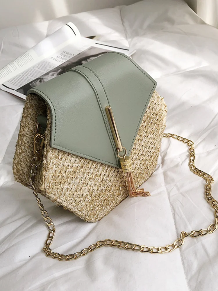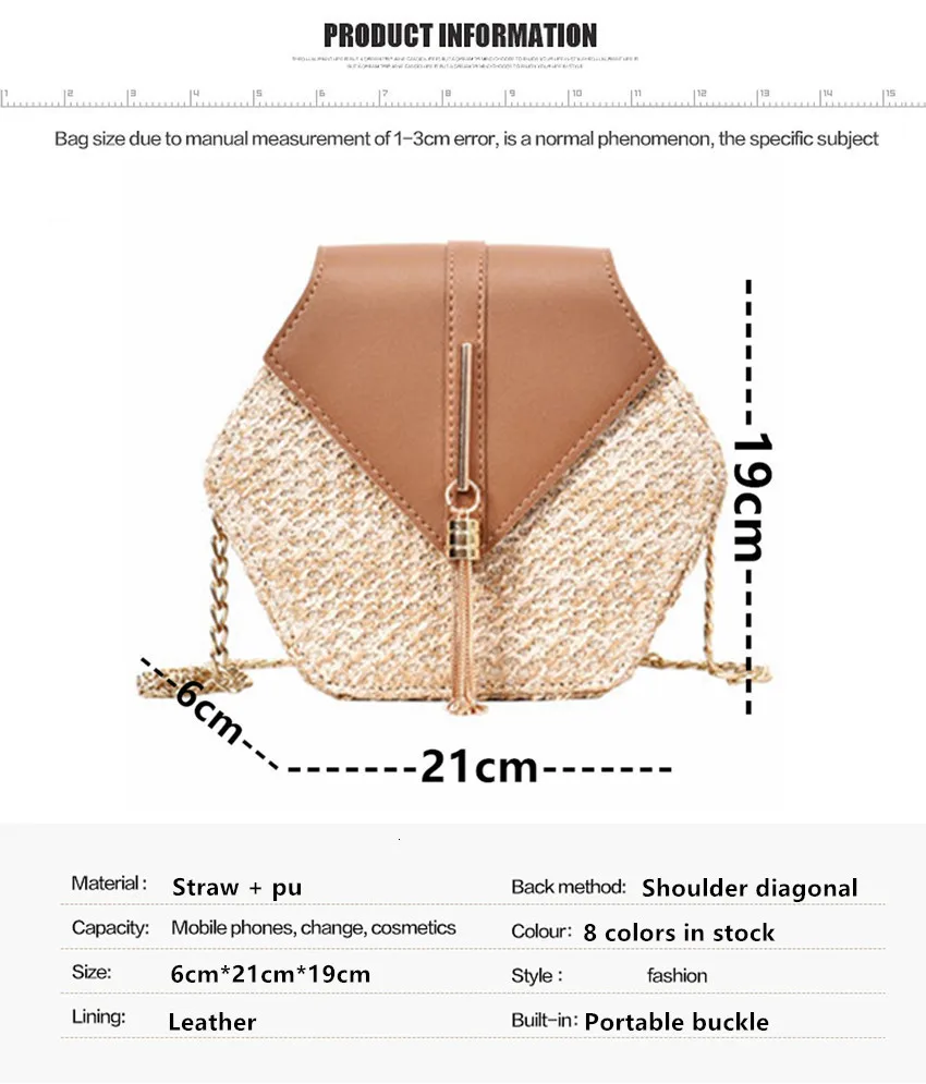 Сумка на плечо Женская шестиугольная, соломенная кожаная сумочка из...
