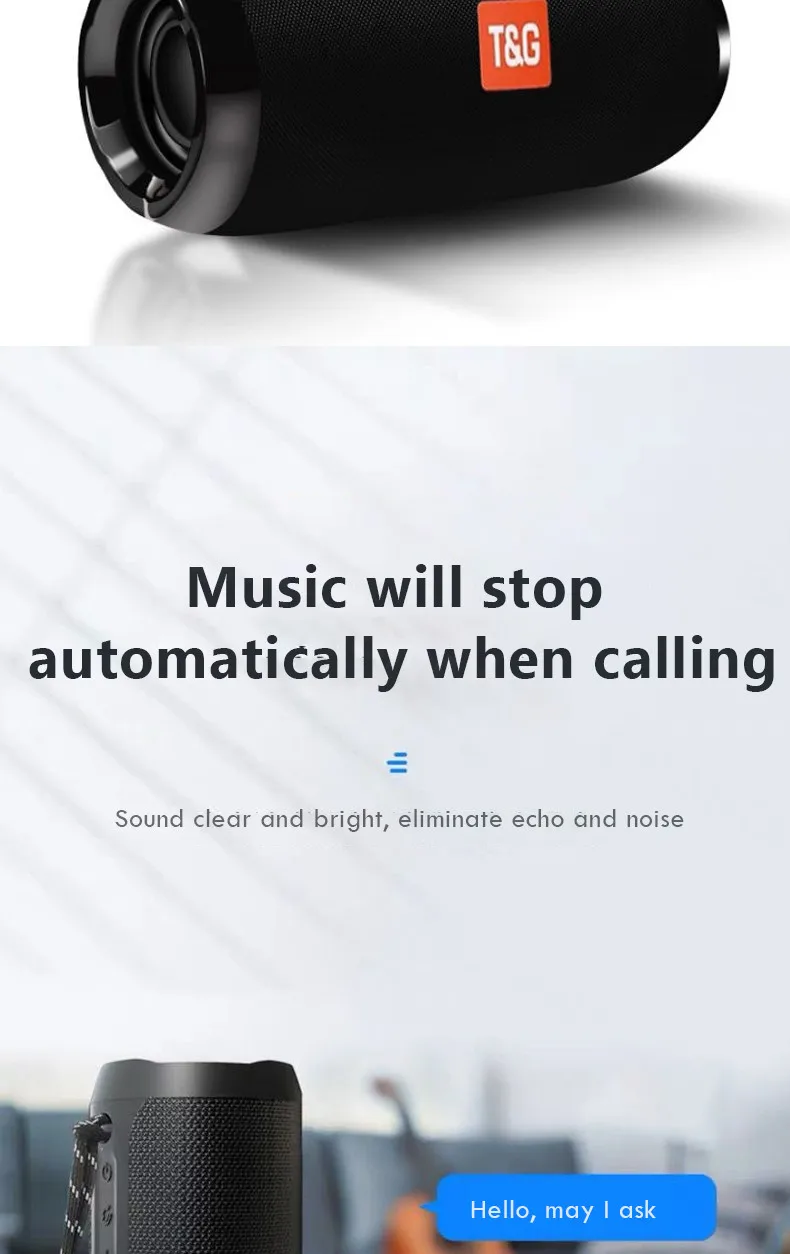 Особенности: 1. Абсолютно новый и высококачественный. 2. Сетчатая крышка для защиты динамика от воды, пыли, ударов. 3. IPX5 водонепроницаемый, пыленепроницаемый, ударопрочный. 4. 5 Вт * 2 большая мощность с двумя басовыми диафрагмами на каждой стороне, вибрирует при воспроизведении музыки. 5. Цилиндрическая форма и встроенный левый и правый канал обеспечивают 360 ° стерео. 6. Функция вызова, микрофон с шумоподавлением позволяет отвечать на звонки, не доходя до телефона. 7. Fm-приемник позволяет свободно слушать радио. 8. Поддержка MP3, WMA, WAV, FLAC, APE форматов музыкальных файлов. 9. Поддержка tf-карты или sd-карты misro до 32G, поддержка USB 2,0 диска. 10. Поддержка USB флеш-диска plug and play. 11. Поддержка внешних MP3 / MP4/компьютера и других функций аудиовхода (AUX) 12. Простое управление кнопками, вы можете нажать кнопки для включения/выключения, воспроизведения/паузы, режима переключения, пропускать песни, регулировать громкость и т. д. 13. Bluetooth 5,0, быстрое подключение и стабильный сигнал, Совместимость со всеми устройствами Bluetooth. 14. Аккумулятор емкостью 1200 мАч до 10 часов воспроизведения при 2/3 громкости при полной зарядке. 15. Это не только bluetooth-динамик, но и радио, проводной динамик, басовый бум-бокс. Параметры версия Bluetooth: 5,0 диапазон Bluetooth по уровню поверхности: <33Ft Поддержка: FM, tf-карта, вход переменного тока, U диск USB вход, 3,5 мм аудио вход расширенной памяти объемом до 32 GB (не входит в комплект) Батарея Емкость: 1200 мАч Время зарядки: 2-3 часа Время прослушивания/разговора: 6-8 часов Уровень водонепроницаемости: IPX5 параметры зарядки: 5 В поддержка музыкального формата: MP3, wav, Wma, FLAC, APE Частотная характеристика: 70 Гц-20 кГц отношение сигнал-шум: 9595 дБ скорость искажений: <0.5% Материал: ABS, сетка цвет: черный, синий, красный, зеленый, камуфляжная посылка: портативный bluetooth-динамик * 1 usb-кабель * 1 аудиокабель * 1 Руководство пользователя * 1