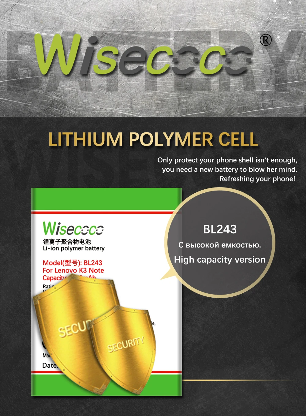 Аккумулятор WISECOCO BL243 4500 мА ч для смартфонов Lenovo K3 Note K50-T5, K50-T3S, A7000, A5500, A5860, A5600, A7600, с кодом отслеживания