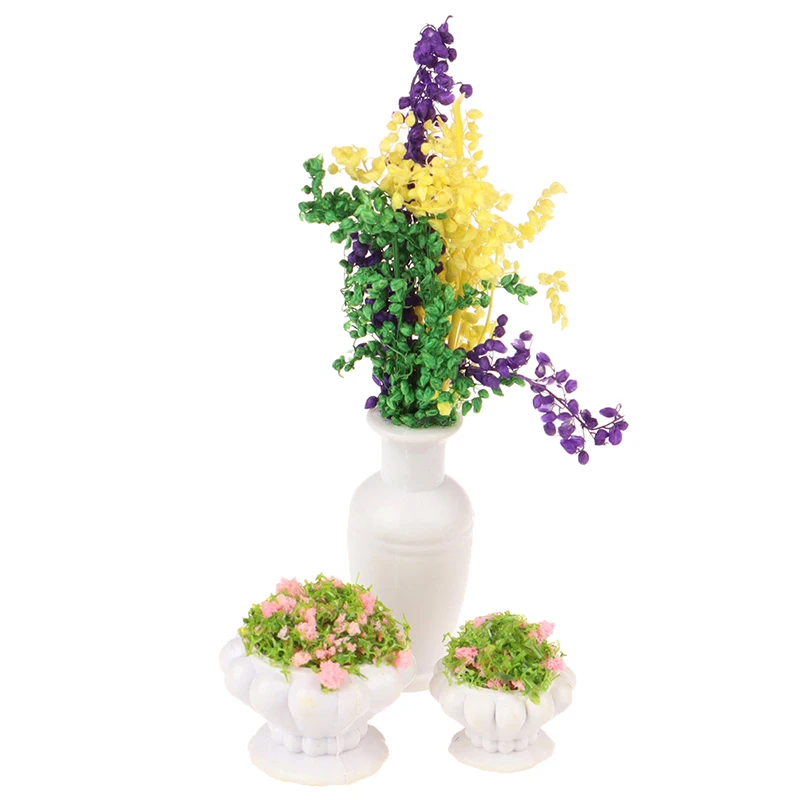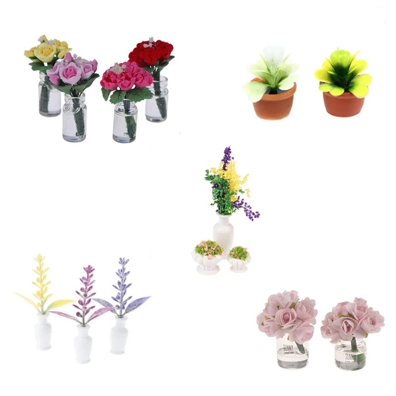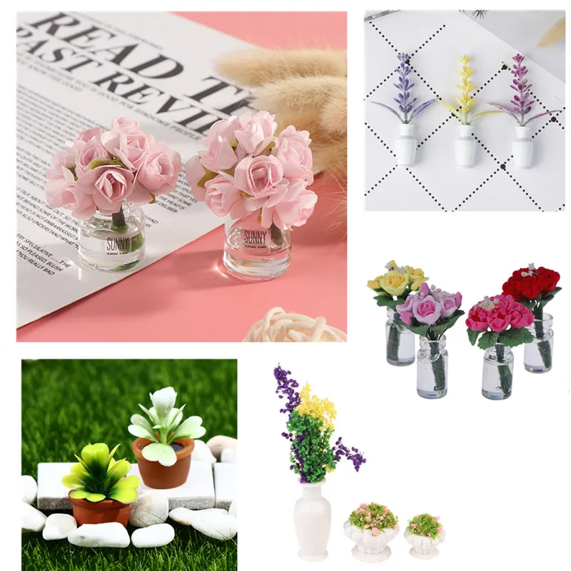 Миниатюрное зеленое растение в горшке для кукольного домика 1:12, модель для украшения сада, стеклянная бутылка, цветок, расположение декора