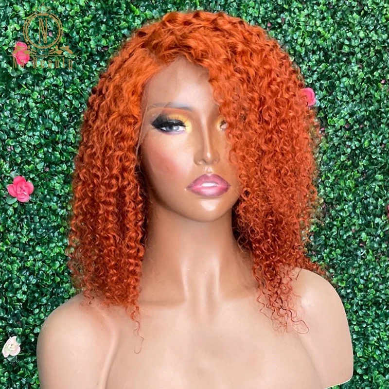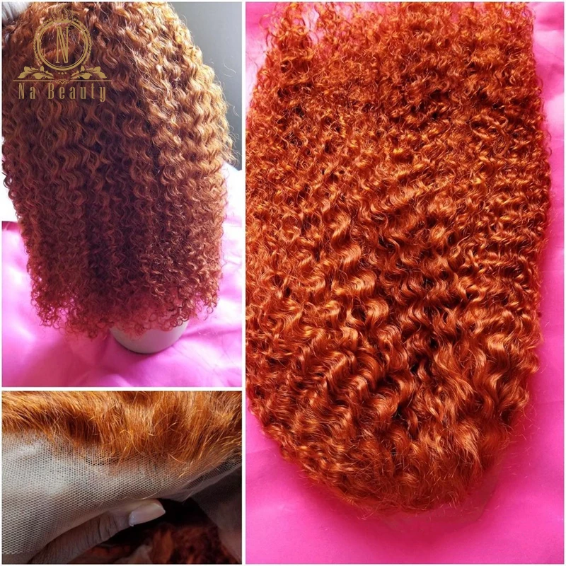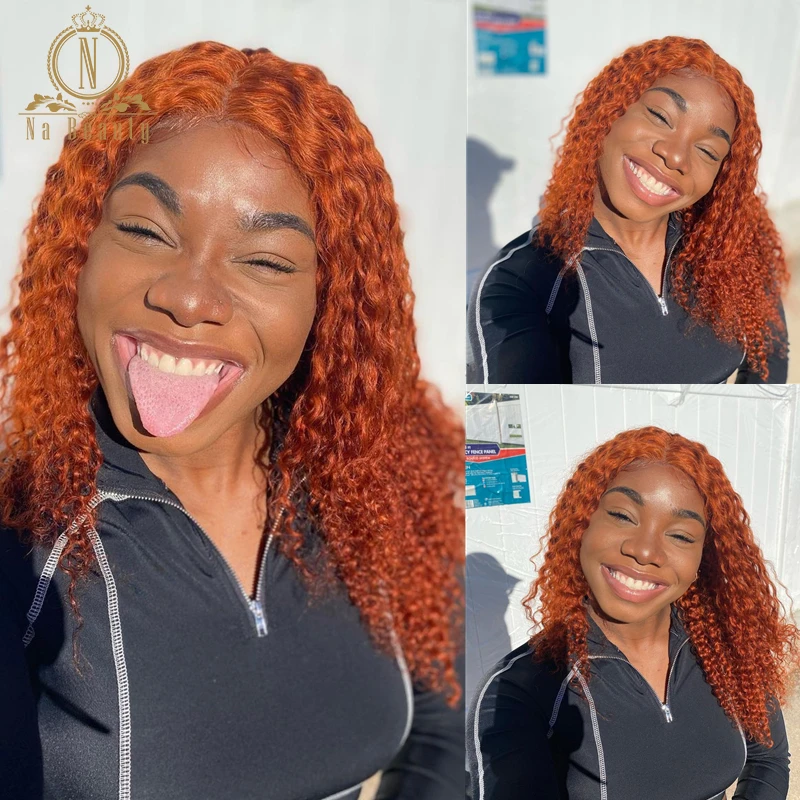 Парик из человеческих волос с имбирным апельсиновым кружевом спереди, кудрявый, цветной, фронтальный, HD, прозрачный, с кружевом, 13x6, предварительно выщипанный парик для женщин Na Beauty