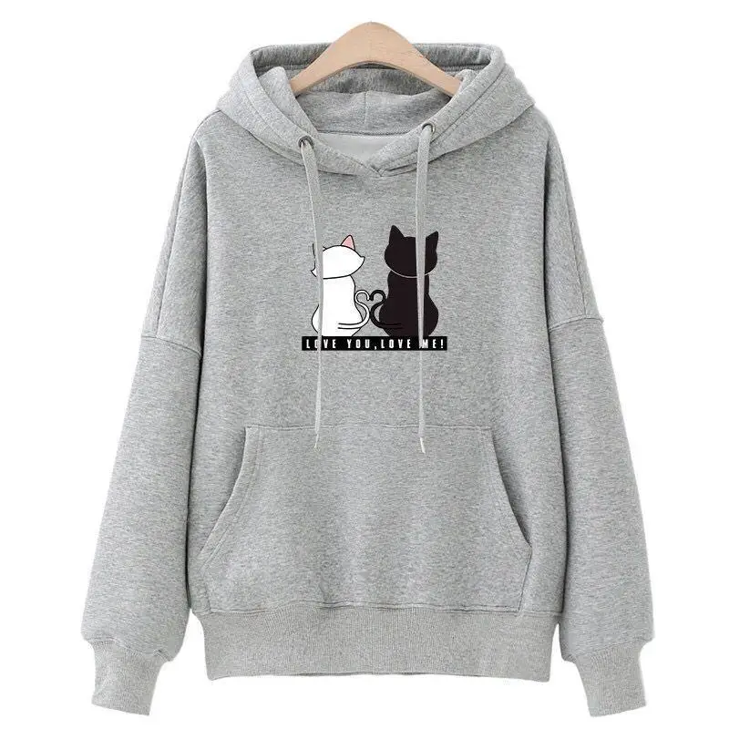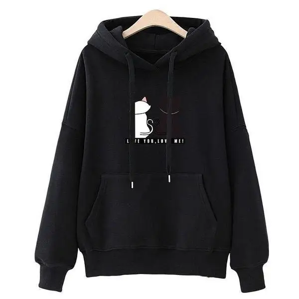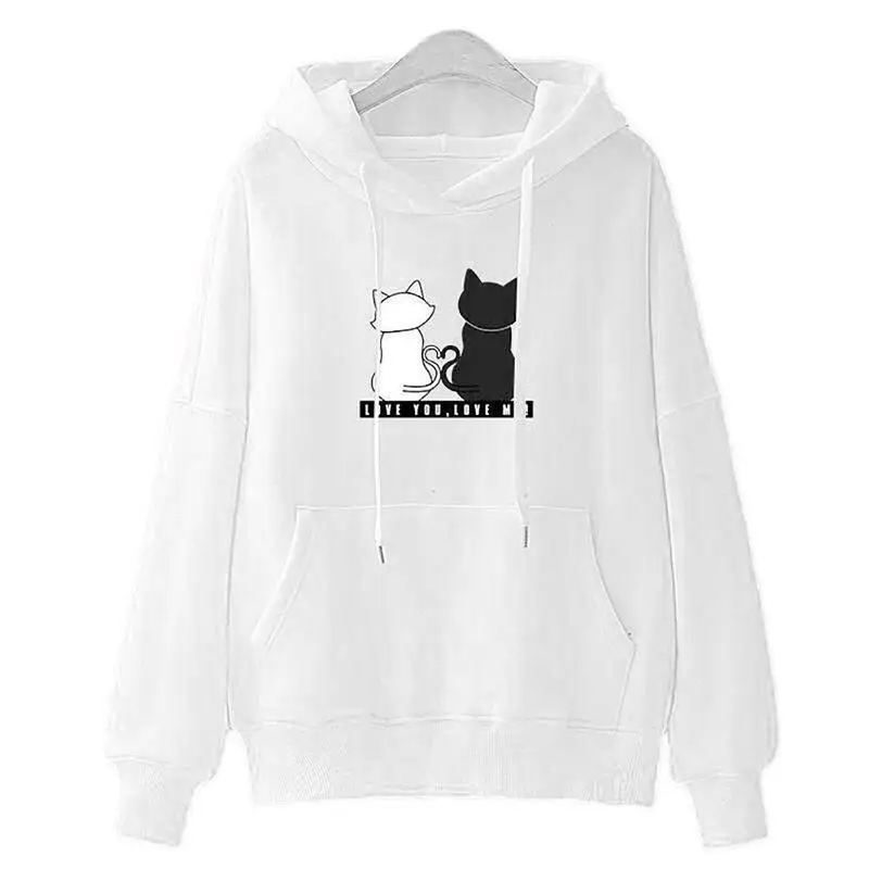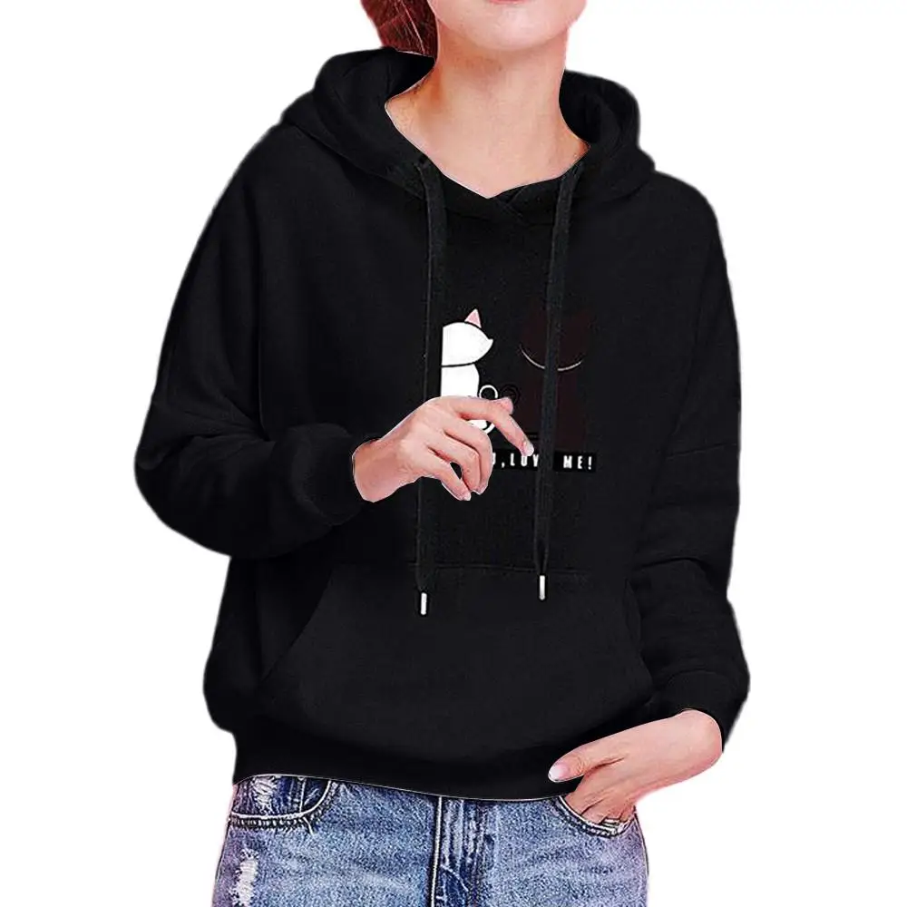 Зимний пуловер, свитшоты, Женская кошачья Милая Женская Толстовка С...