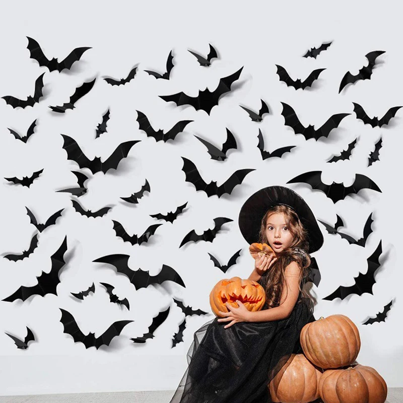 12 шт.упак. украшения для Хэллоуина 3D черная ПВХ летучая мышь для ...