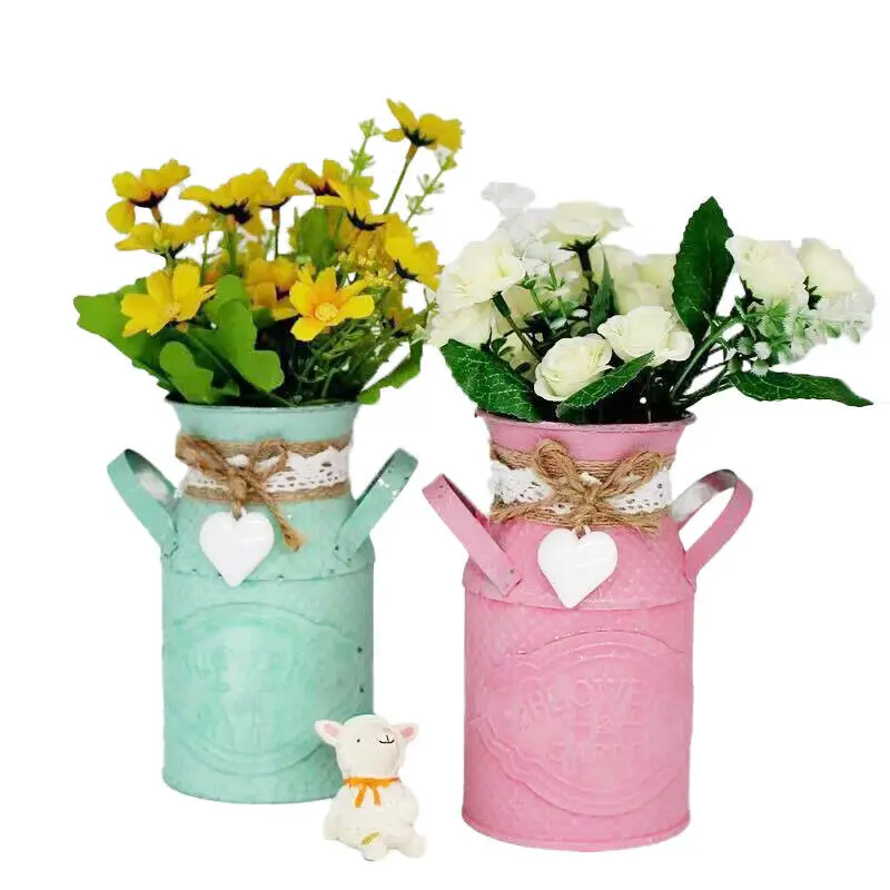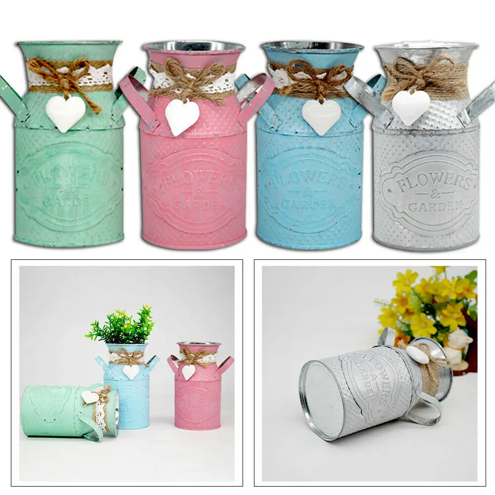 Винтажная потертая шикарная Цветочная ваза, жестяной кувшин, металлический цветочный горшок, свадебное украшение для дома
