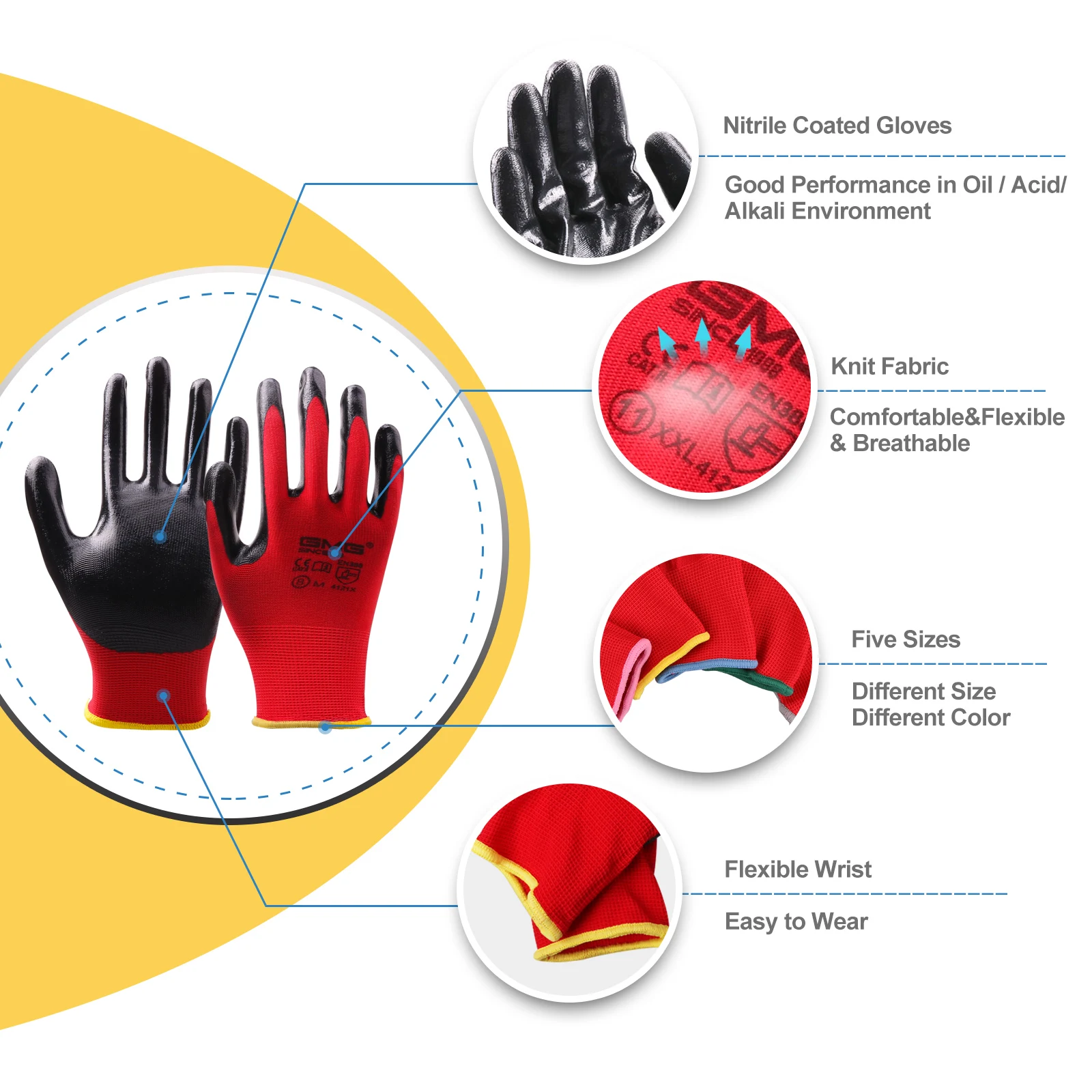 Рабочие перчатки GMG, красные, нейлоновые, черные, нитриловые, песч...