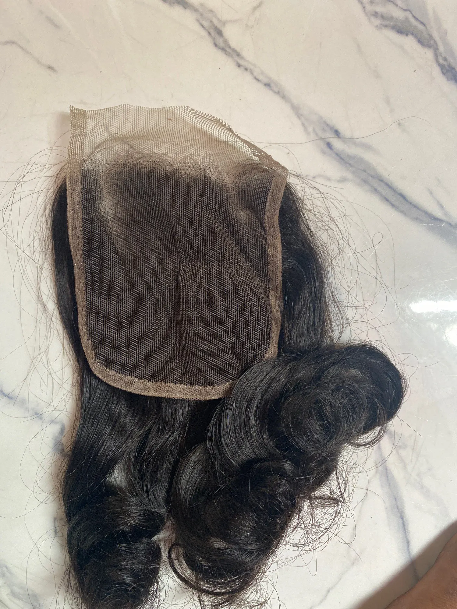 4x4 кружево Закрытие отбеленные узлы бесплатносреднийтри части браз...