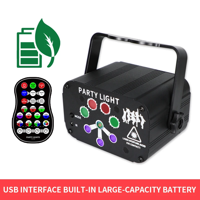 Фигурный лазерный светильник BROTHER с 8 отверстиями 128, лампа для сцены, ламсветильник с USB-разъемом и дистанционным управлением для бара KTV