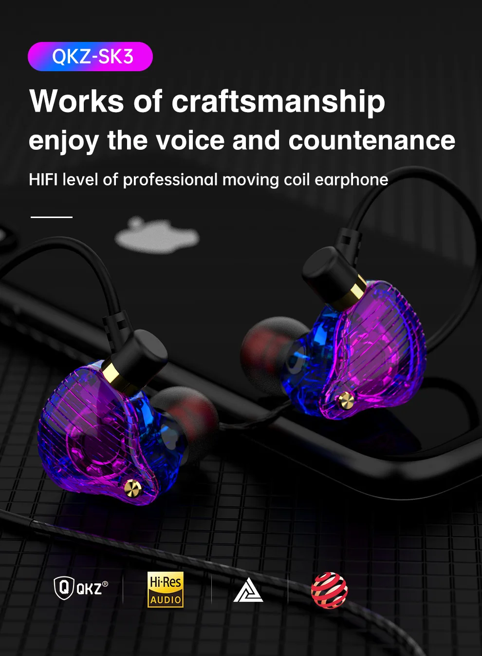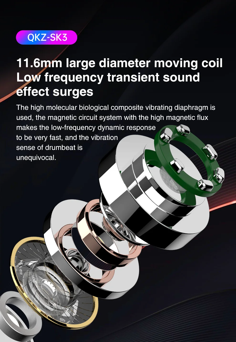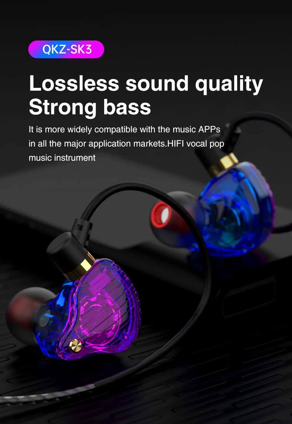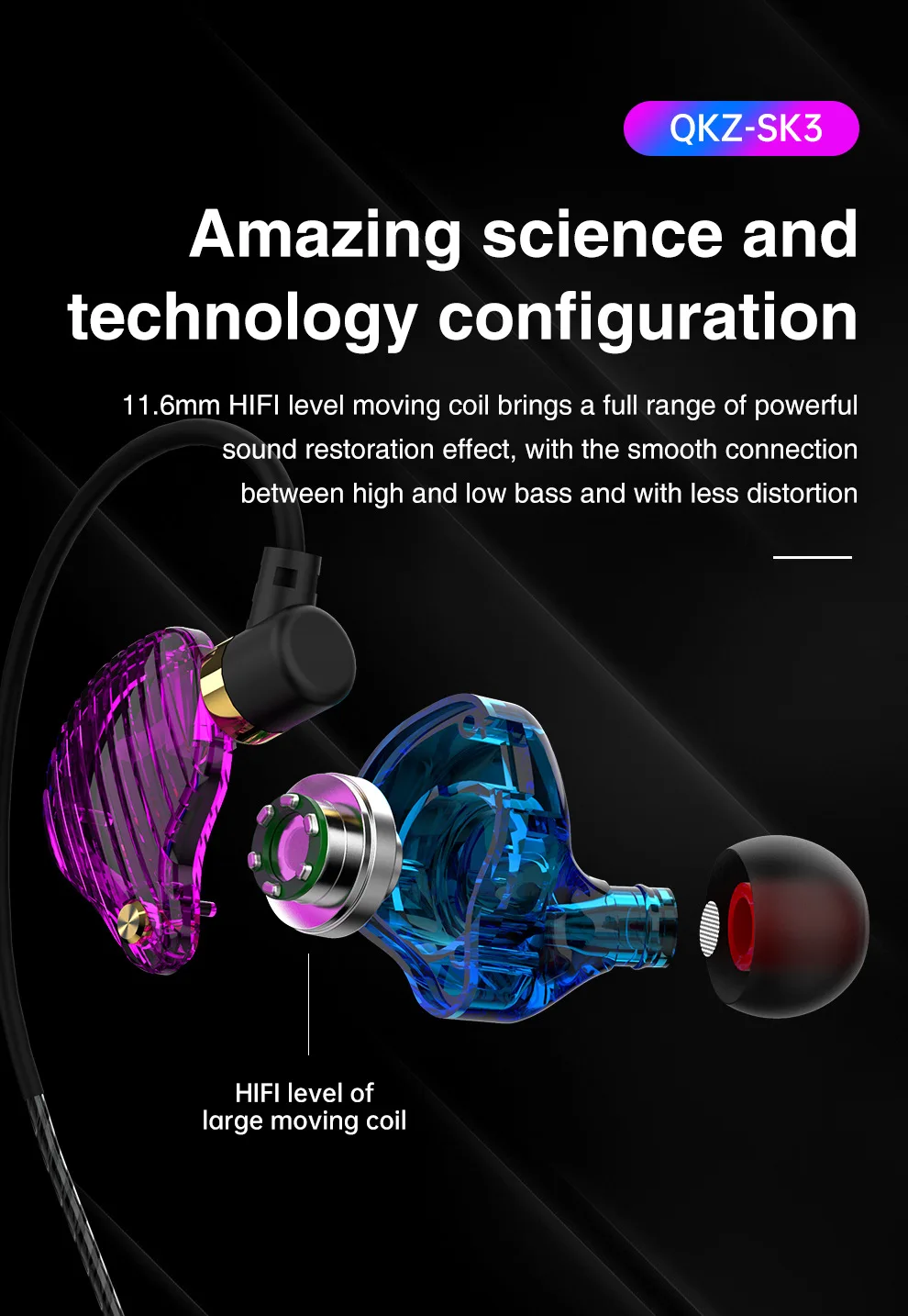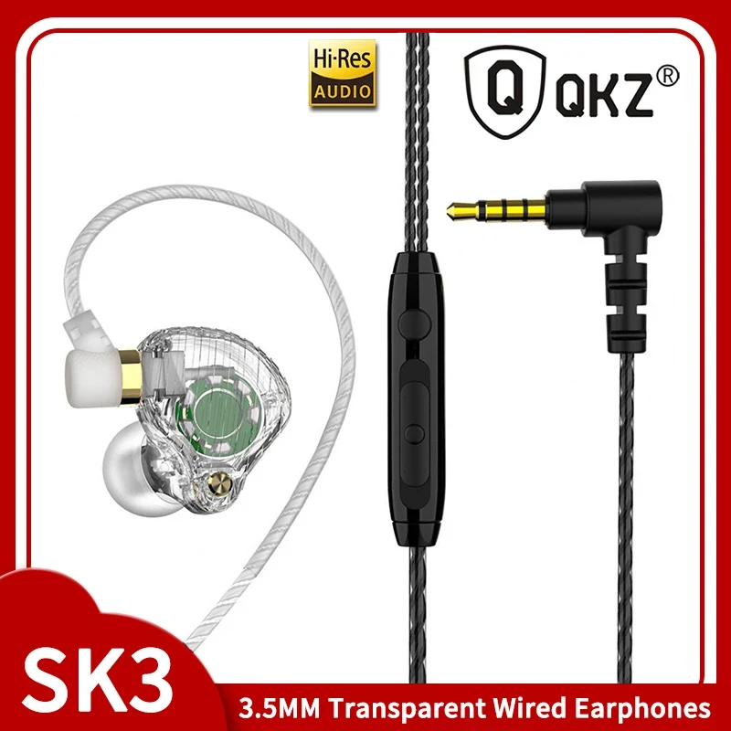 Проводные наушники QKZ SK3 3,5 мм, наушники с двойным приводом Hi-Fi, басовые стерео музыкальные гарнитуры, игровые наушники, наушники для бега с микрофоном