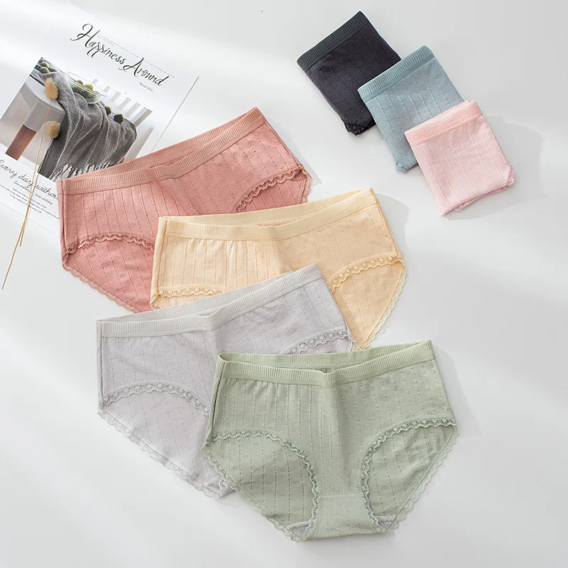 Женские хлопковые трусики большого размера XXL, антибактериальное однотонное нижнее белье, дышащие трусики со средней талией и кружевными краями, сексуальное нижнее белье в полоску