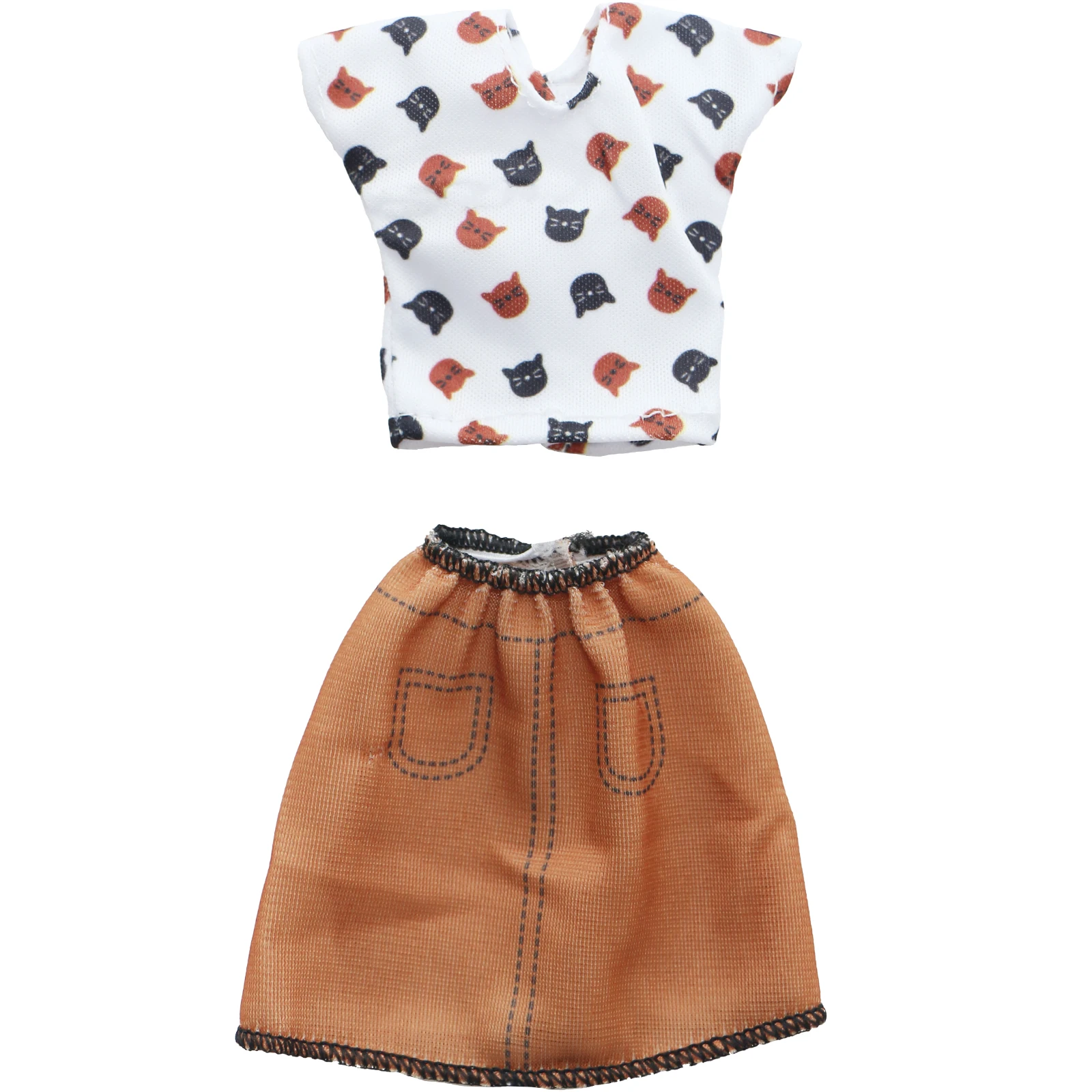 Рубашка с милыми животными и кошками + коричневое короткое платье, Модный комплект с топом и юбкой, Одежда для куклы Барби, аксессуары для кукольного домика
