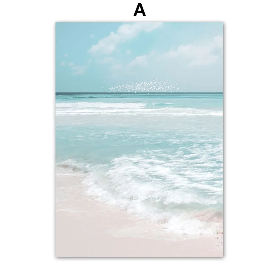 Плакаты и принты с изображением голубого моря, пляжа, волн, пальмы, цветущего персика, художественная стена с цитатой, скандинавский пейзаж, Картина на холсте, домашний декор icon star icon star icon star icon star icon star