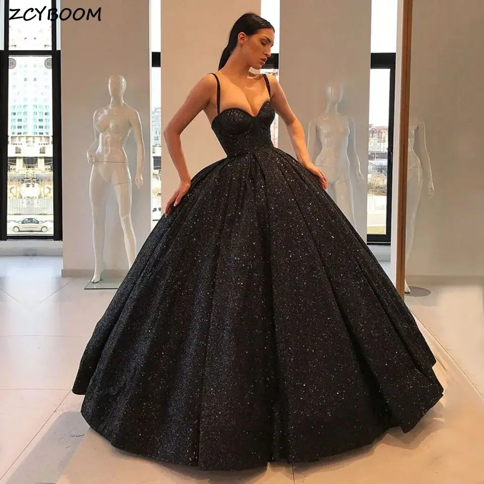 Черное бальное платье с блестками, вечерние платья, женское официал...