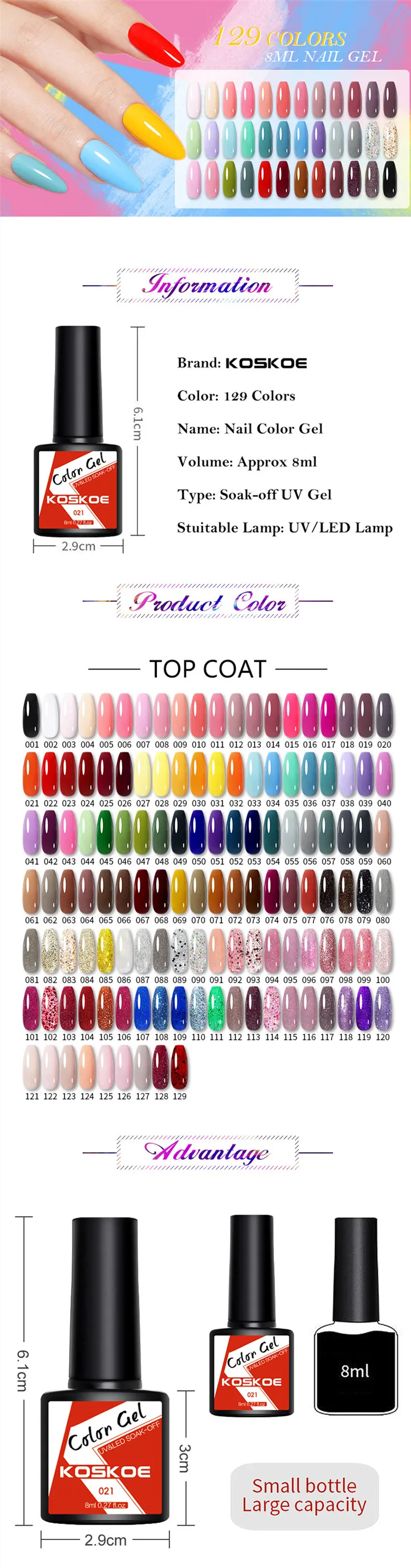 KOSKOE 8 мл Гель-лак для ногтей Полуперманентная УФ светодиодный лампа Блеск для маникюра Набор для дизайна ногтей базовое и верхнее покрытие гель-лаки