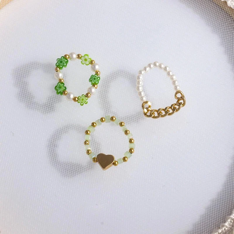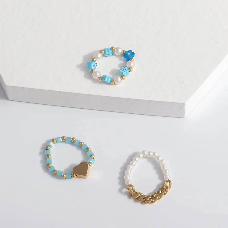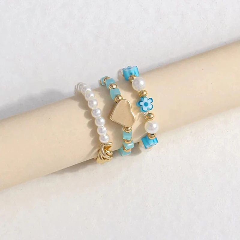 Комплект колец с бусинами из искусственного жемчуга, 3 шт.компл. для женщин, модные геометрические золотые кольца в форме сердца, 2021, ювелирные изделия вечерние Ринок