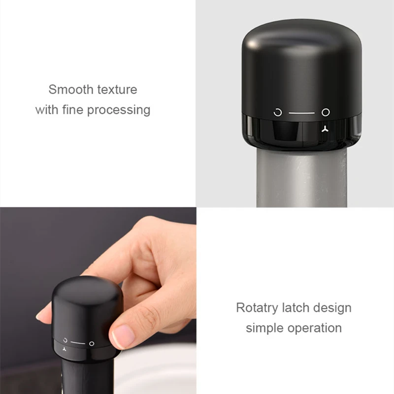 Особенность:1. Мини-пробка для шампанского оптимизирует внутреннюю структуру, чтобы сделать пробку плотнее на горлышке бутылки 2. Надежно заблокируйте газ в бутылке, чтобы предотвратить медленное рассеивание пузырьков после открытия бутылки. 3. Пробка для шампанского имеет форму «маленькой крышки», а Изогнутая конструкция пузырчатой бутылки наклеена, чтобы сделать стиль более гармоничным. 4. Маленький и изысканный, удобнее хранить. 5. В сочетании с дизайном Поворотный замок пробка для шампанского тщательно добавляется с тремя небольшими желобками, подходящими дляЖивот пальцев, что облегчает вращение и использованиеСпецификация:Материал: АБС-пластик + пищевой силиконЦвет: черныйРазмер: около 39*40 мм Посылка:Пробка для вина 1/3 шт.
