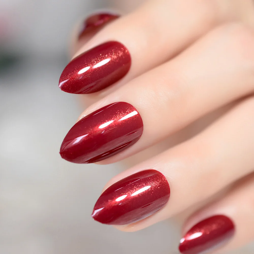 Средние миндальные чистые красные цветные гелевые наконечники, украшение, искусственная ручка, дополнительный блеск с наполняющей палочкой для ногтей, IMABC