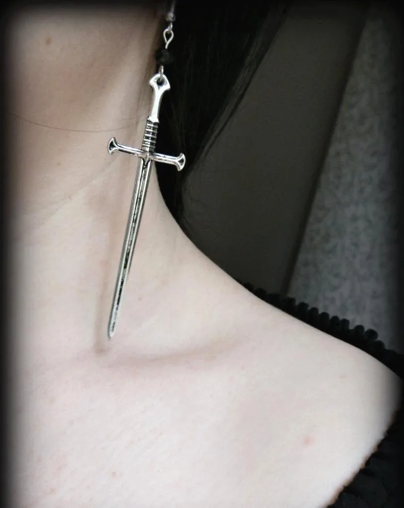 Женские серьги с мечом, в готическом стиле, серебристого цвета, со ...