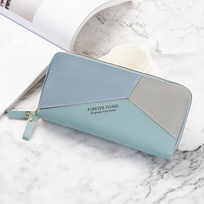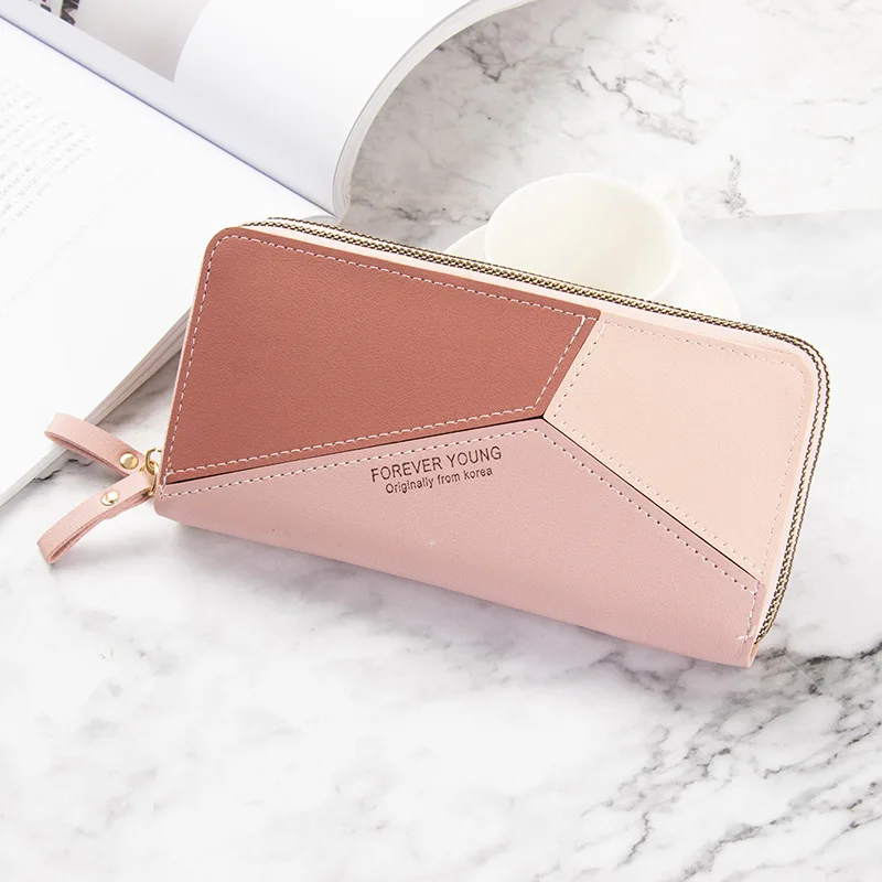 2021 кошелек женский длинный кошелек шить Цвет в простом стиле с за...