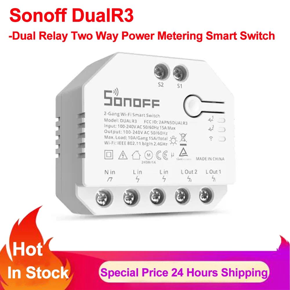 SONOFF DUALR3 выводит ваш дом на следующий уровень. DUALR3-это встроенный модуль беспроводного двойного реле Wi-Fi, который устанавливается за любым стандартным переключателем для передачи его в умный переключатель для беспроводного дистанционного управления с помощью мобильных устройств или голосовой команды. Объединяя ваши бытовые приборы в интегрированную беспроводную сеть, чтобы они общались друг с другом, что удобно для вас управлять и контролировать, включая свет, бытовую технику и моторизованные объекты, такие как рольставни, оконные оттенки, жалюзи, тенты и т. Д.