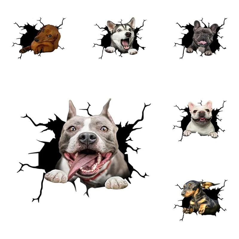 Наклейки для автомобиля, 30 х20 см, забавные, объемные, голова собаки в трещине, украшения для окна, внешние аксессуары для автомобиля, 2021