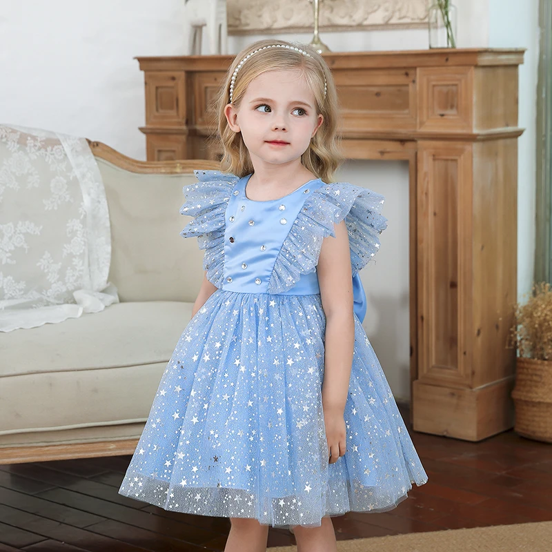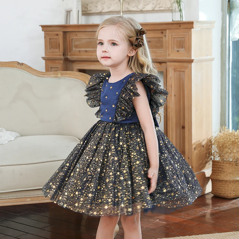 Вечернее платье для маленьких девочек, платья для девочек с цветами, платье-пачка с блестящими звездами для выпускного вечера, милая детская одежда с бантом на день рождения, Детский костюм принцессы