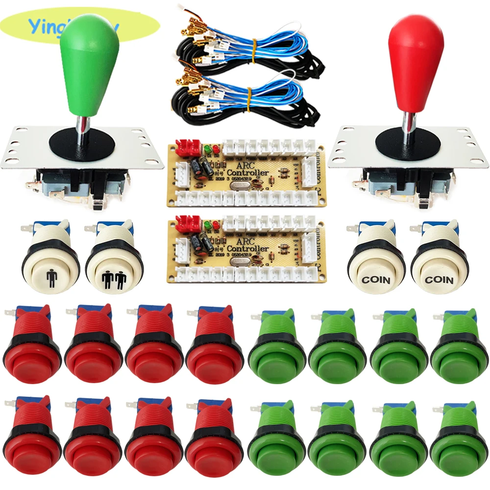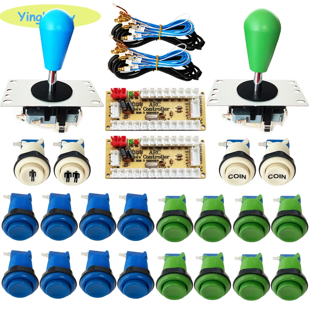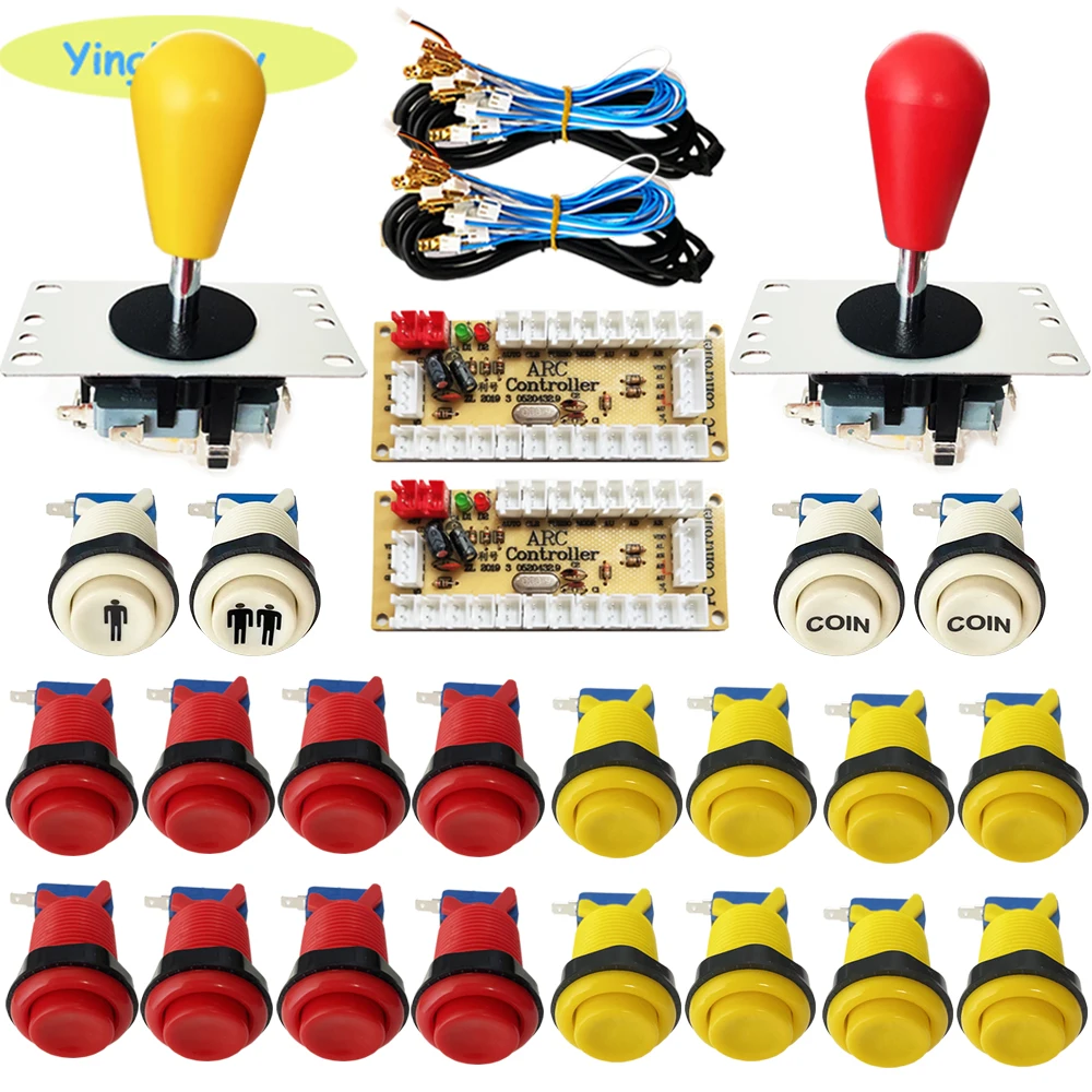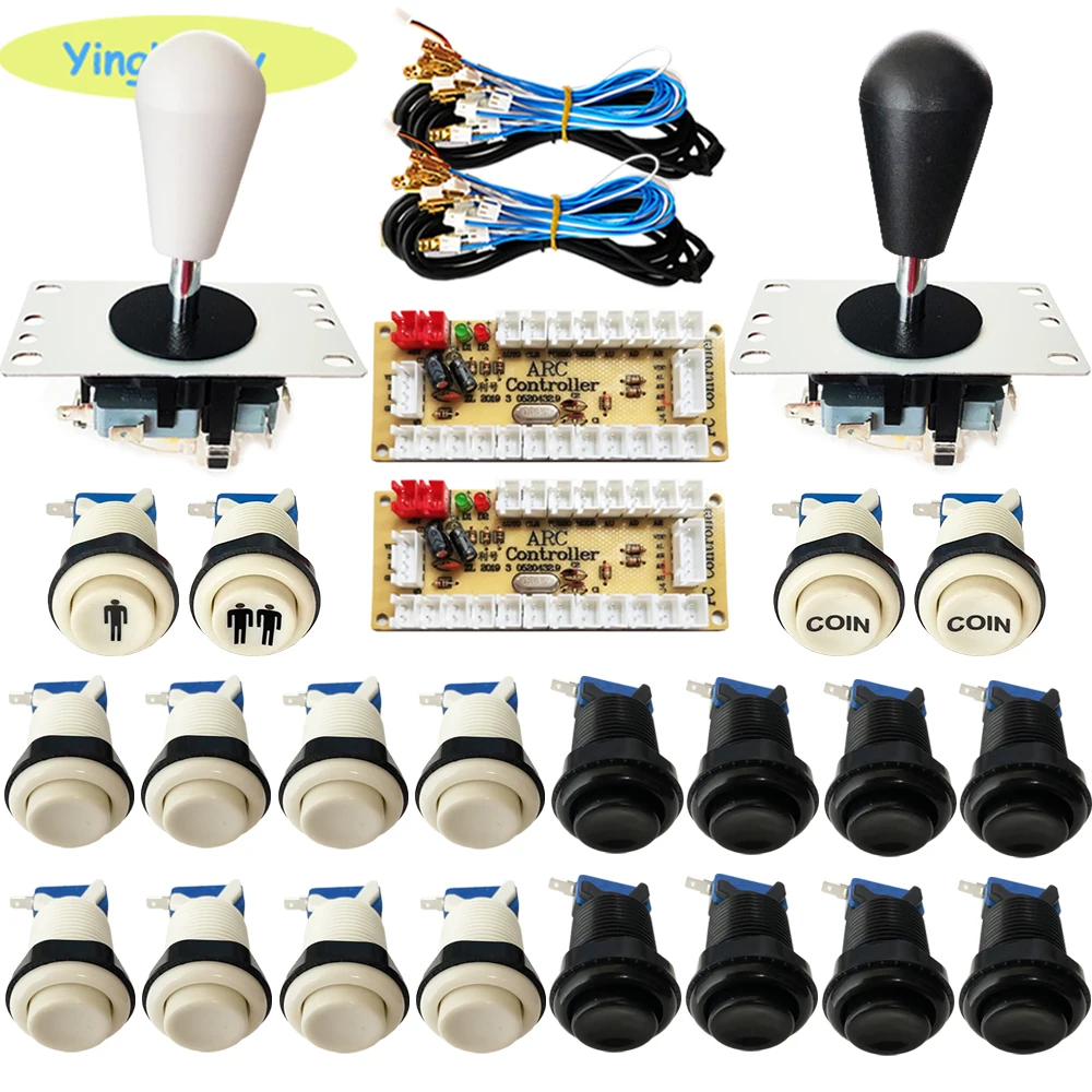 2x Высококачественная плата кодировщика2 x USB кабель2x8 способ Happ стиль SANWA Джойстик (Сделано в Китае)8 x 2pin Провода кабели для джойстика16 x Кнопка Happ2 x Кнопка CION1x1P кнопка1x2P кнопка20 x 2pin Провода кабели для кнопки20 x микропереключатель для кнопки
