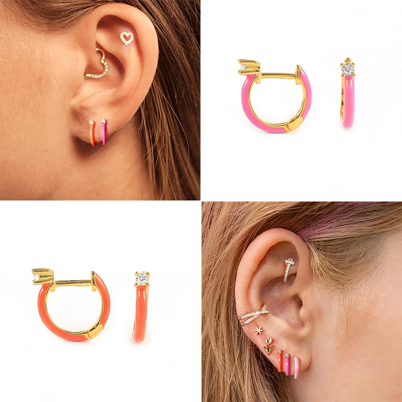 Aide серьги-кольца, покрытые эмалью для женщин неоновый круглой фор...