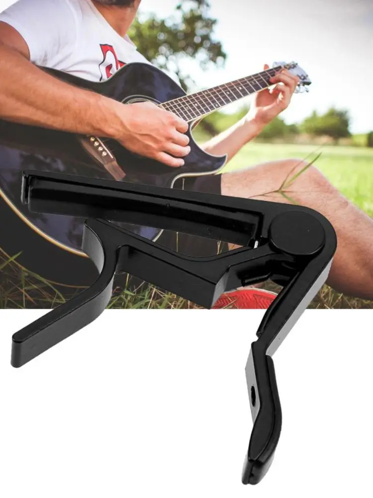 Особенности:Отличный быстроразъемный капо, подходящий для электрических или акустических гитар;Быстро и легко снимается и перемещается, не мешая настройке;Материал из алюминиевого сплава; Удобный и портативный;Легко использовать, можно перемещать одной рукой;Мягкие резиновые прокладки для плотного натяжения струны и отличной защиты;