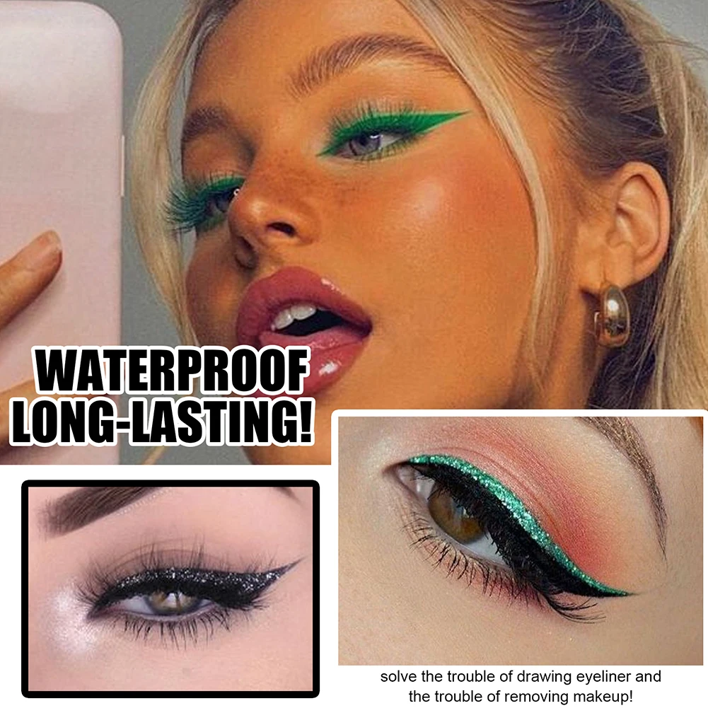 Подводка для глаз 2 в 1, Многоразовые водонепроницаемые блестящие н...