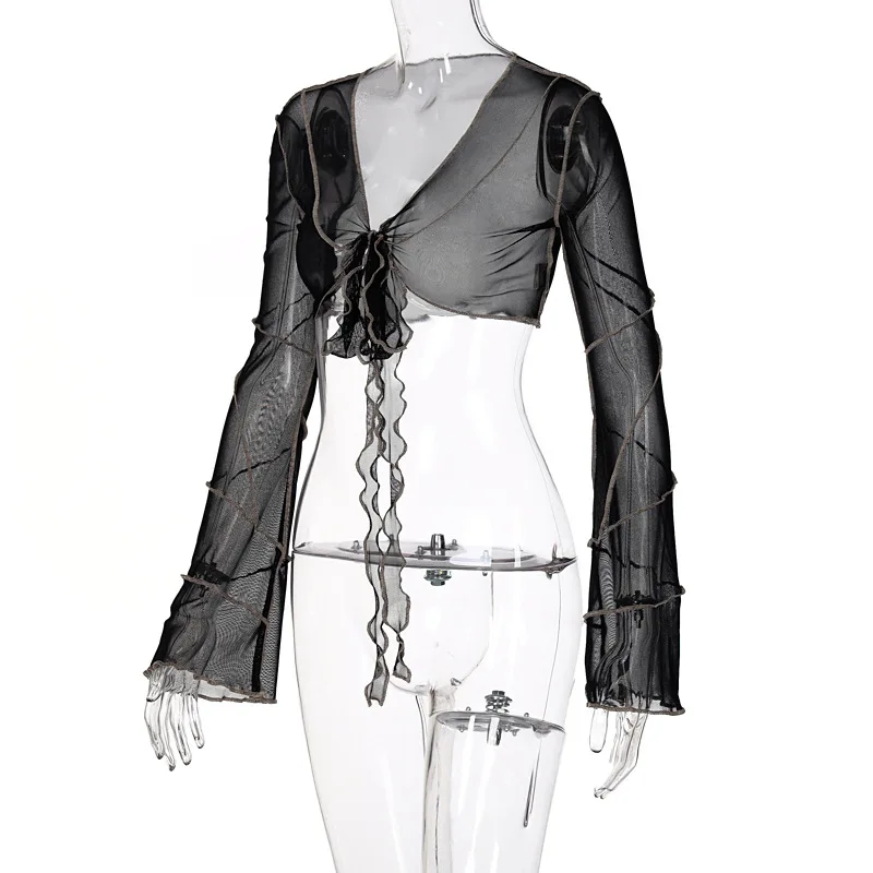 Е-для девочек черные сетчатые кроп-топы Готический Y2K эстетическое...
