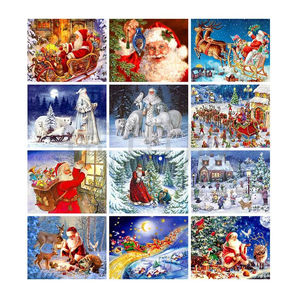 Новые рождественские алмазные картины MUXUN, 5D сделай сам, полноразмерная вышивка с изображением снега, Санта-Клауса, грузовика, вышивка крестиком, искусство, алмазная живопись, картина