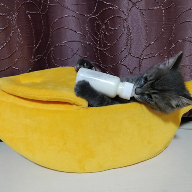 Кровать-домик для кошки-банана, милая подушка для щенка-банана, согревающая мягкая кровать для домашних животных, товары для кошек, коврик, кровати для кошек и котят