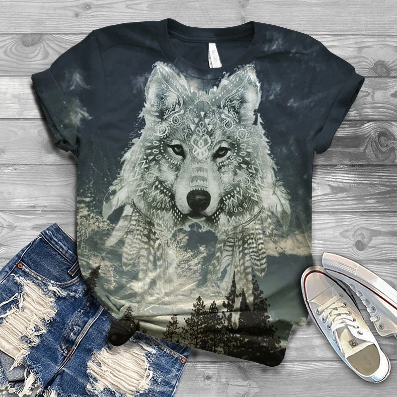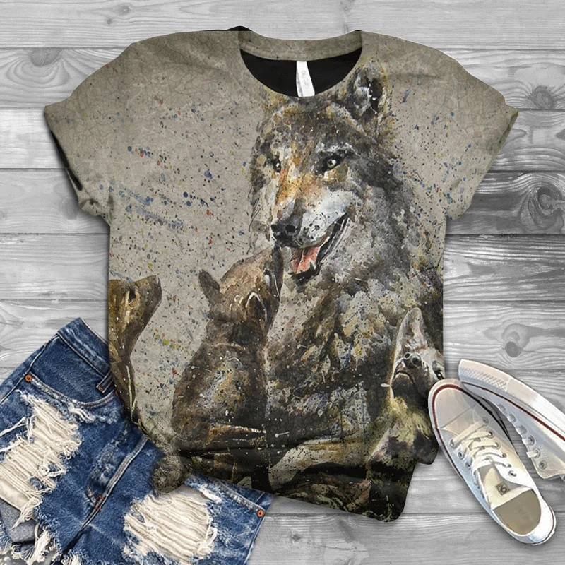 Новинка 2021, лидер продаж, летняя 3DT рубашка с коротким рукавом и принтом головы волка, парная футболка с коротким рукавом, топ с животными, уличная одежда
