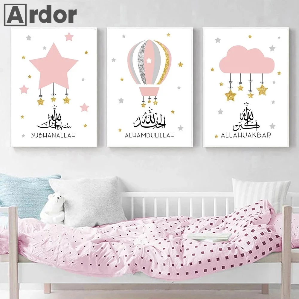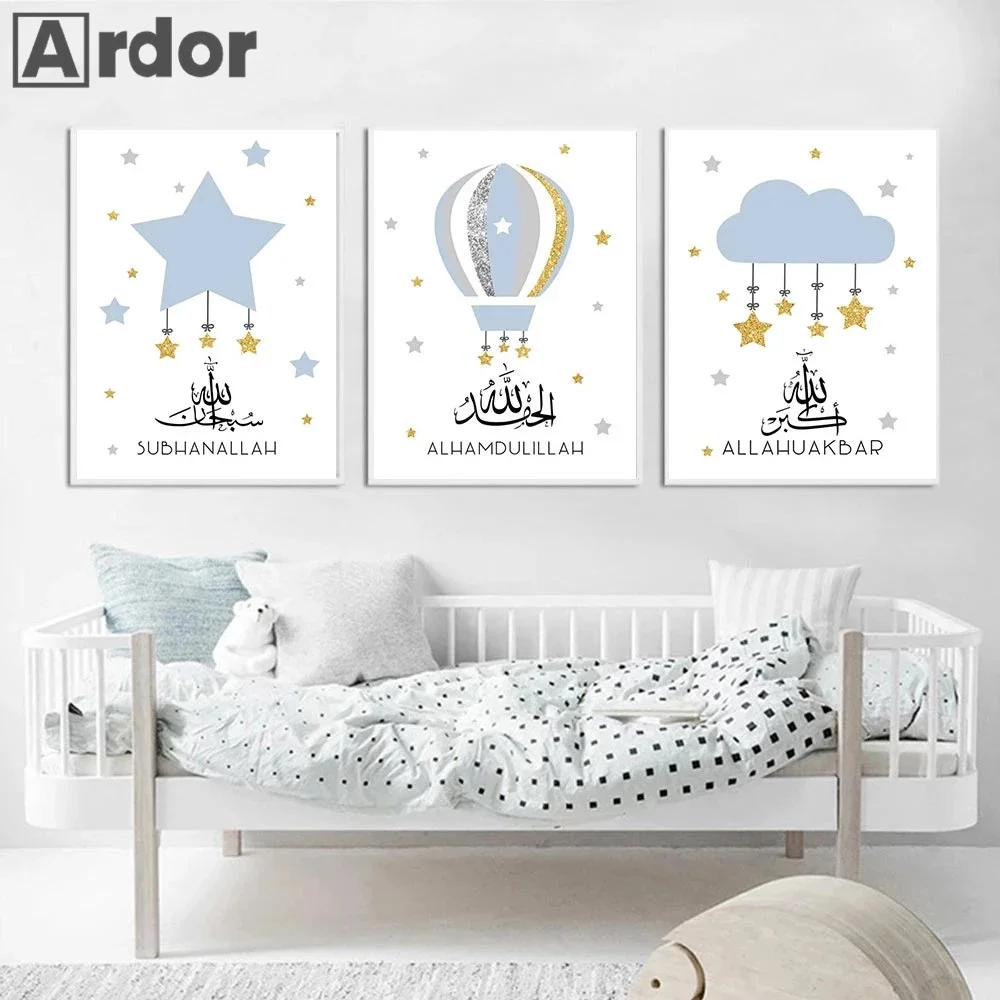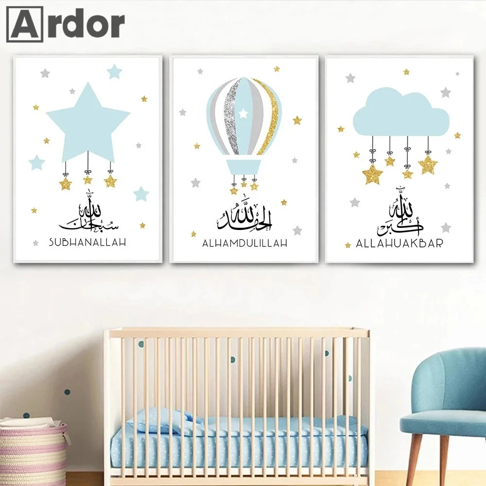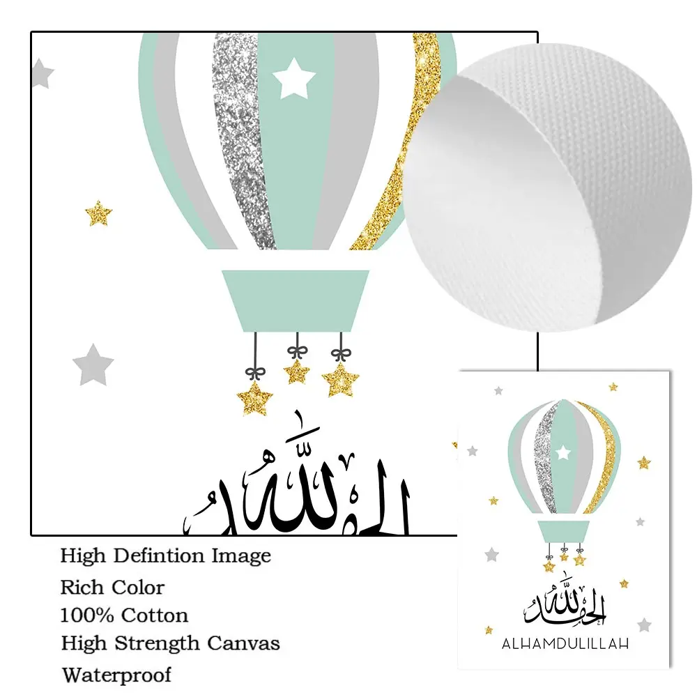 Мусульманский плакат с зелеными золотыми звездами, настенный плакат с воздушным шаром, художественный принт для детской комнаты, Картина на холсте в скандинавском стиле, домашний декор для детской комнаты