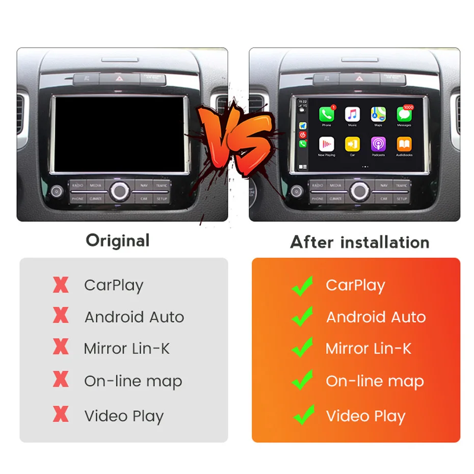 Беспроводной мультимедийный интерфейсный блок Apple CarPlay Android для Volkswagen VW Touareg с поддержкой камеры Mirror-Link