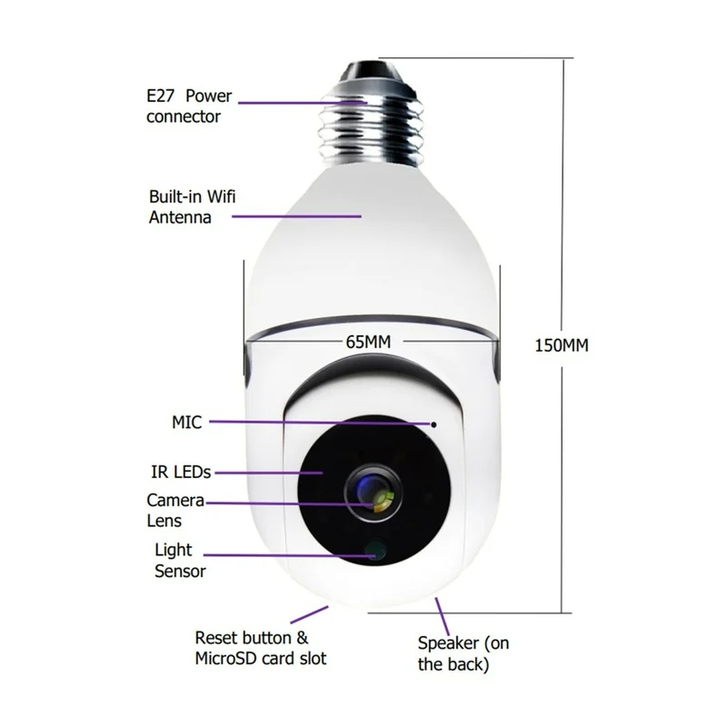 IP-камера видеонаблюдения, 1080P, E27, PTZ, Wi-Fi, с автоматическим отслеживанием движения, цифровым зумом, двусторонней передачей, полноцветным ночным видением