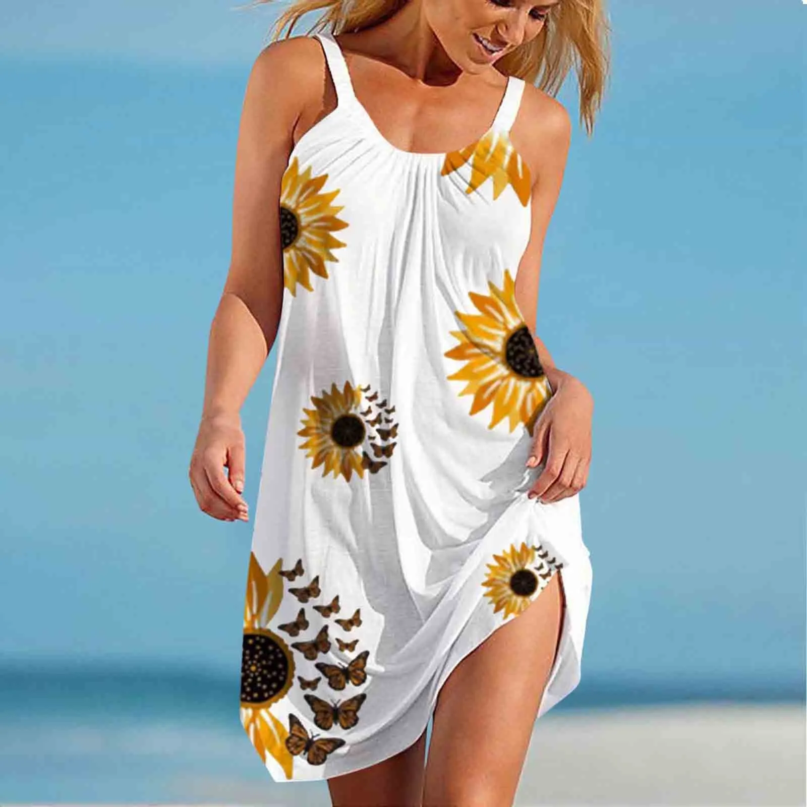 Женское свободное пляжное платье в стиле бохо с подолом, сексуальное летнее платье без рукавов с градиентным переходом цветов, Женский праздничный летний сарафан 40 #, 2021