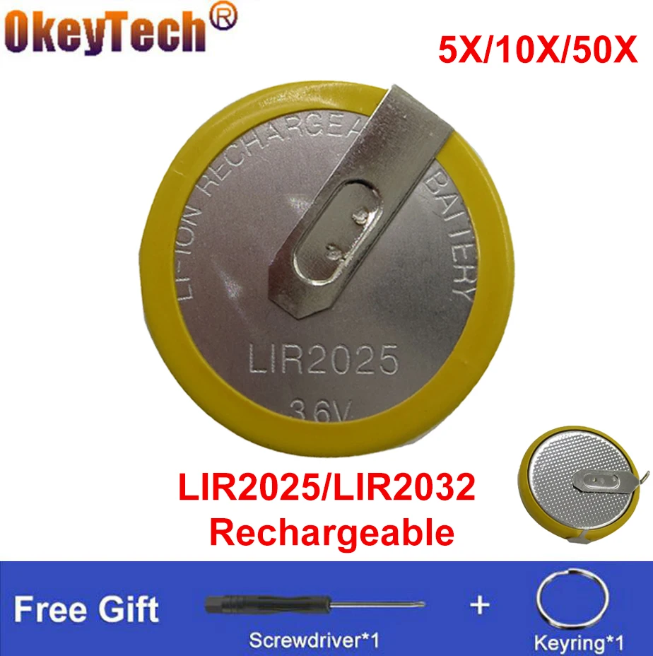 OkeyTech 51050 шт. аккумуляторов для BMW 1 3 5 E46 E39 X3 X5 E46 E38 E3 дистанционный Автомобильный ключ 3,6 В LIR 2025 LIR2032 перезаряжаемая батарея